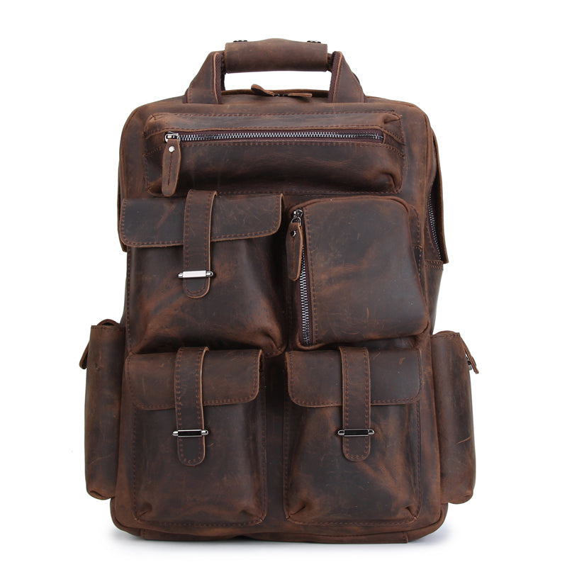 Design: Cool Leather Mens Backpack Large Vintage Travel Bag for MenOverview: