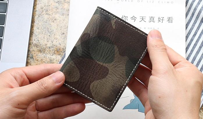 Style: Cool Leather Mens Camouflage License Wallet Front Pocket Wallet Slim Card Wallet for Men
