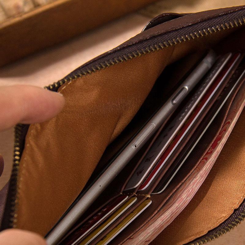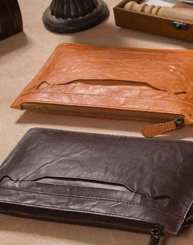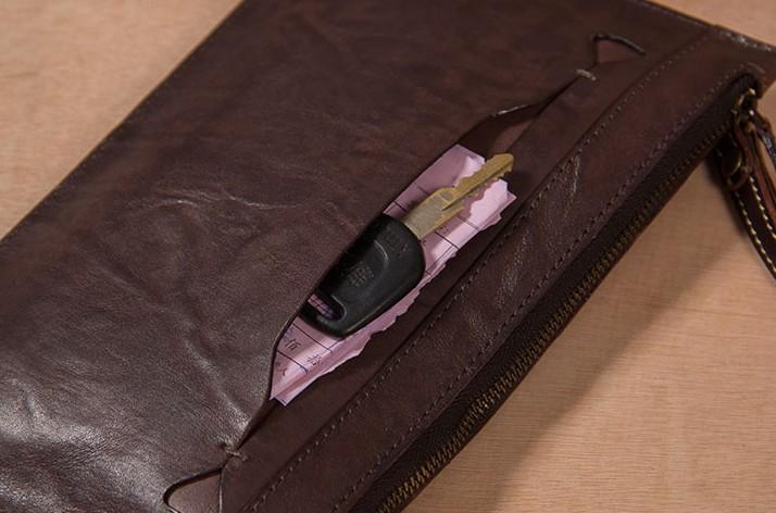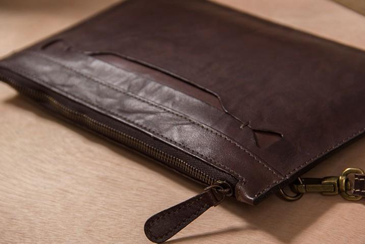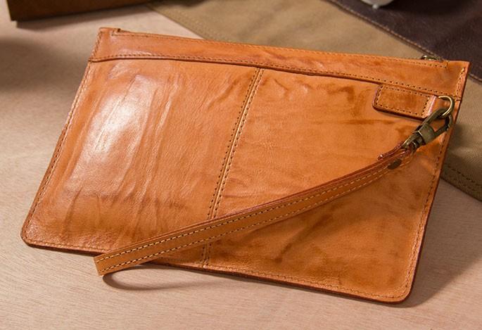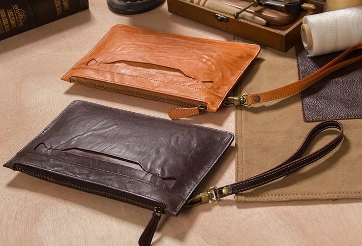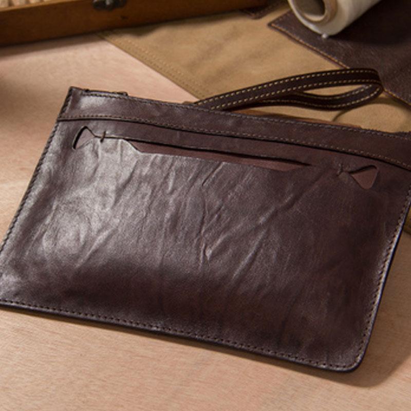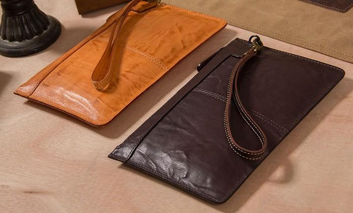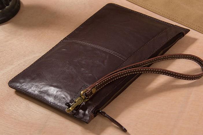 Design: Cool Leather Mens Clutch Wristlet Bag Vintage Zipper Clutch for Men