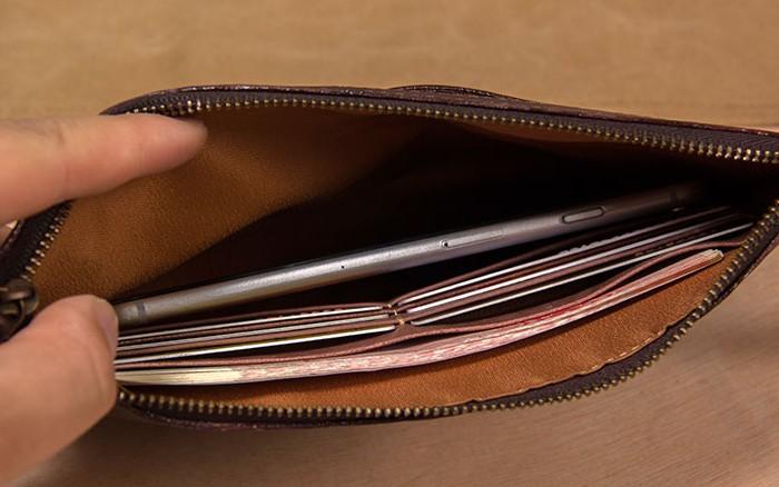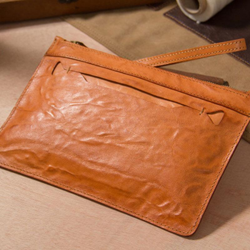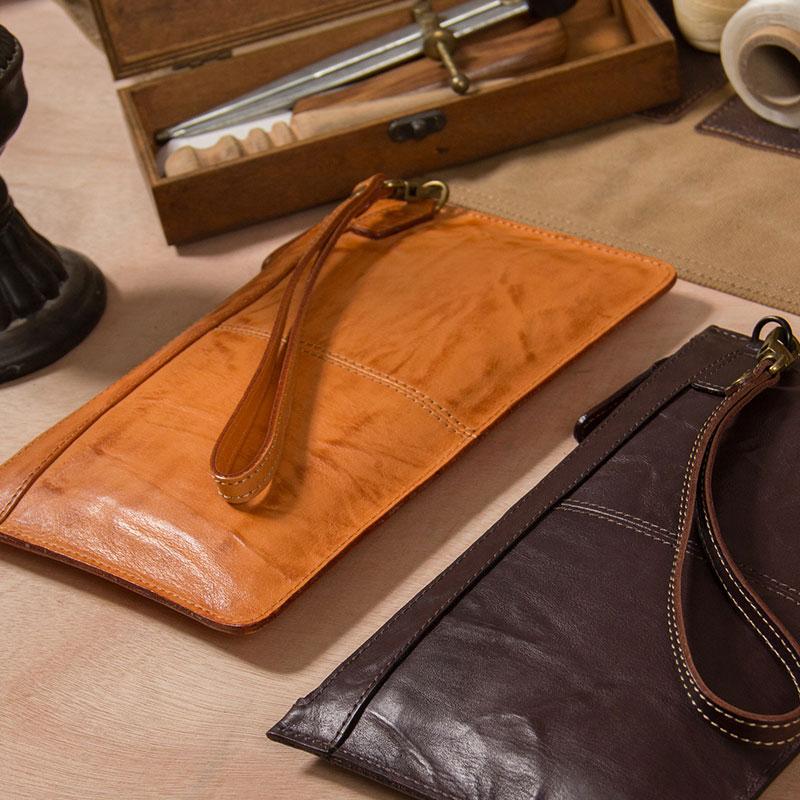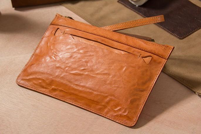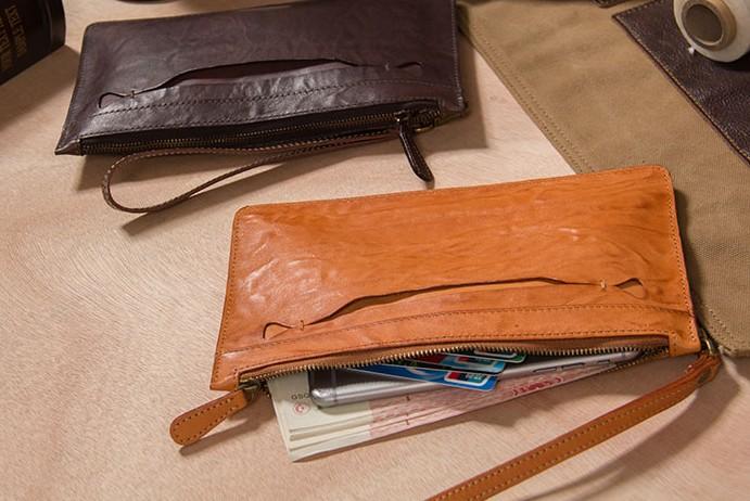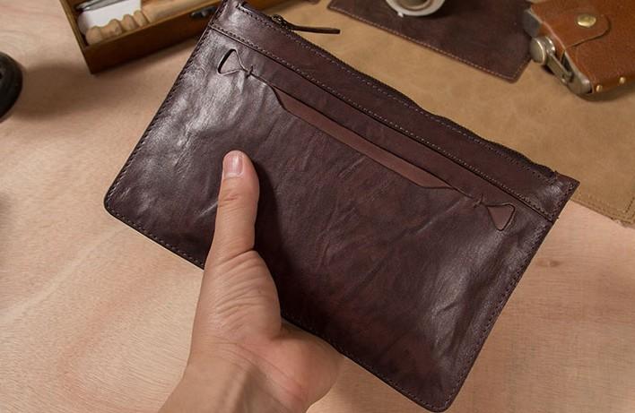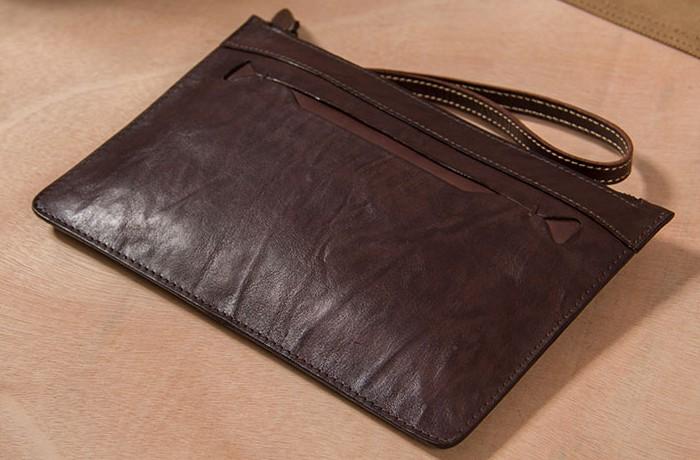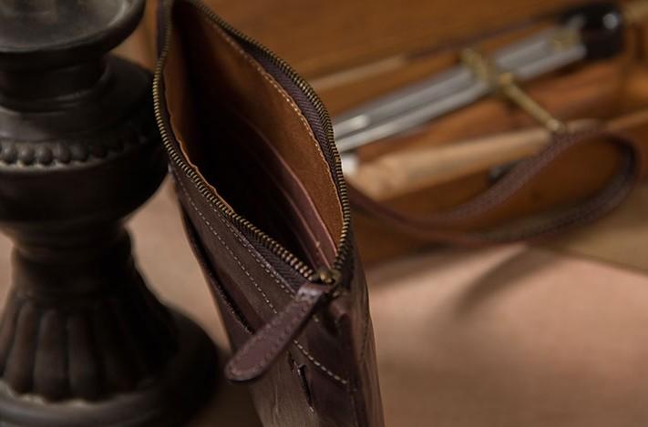 Design: Cool Leather Mens Clutch Wristlet Bag Vintage Zipper Clutch for Men