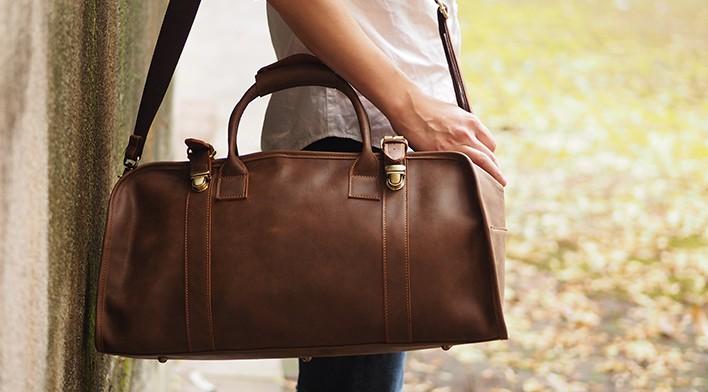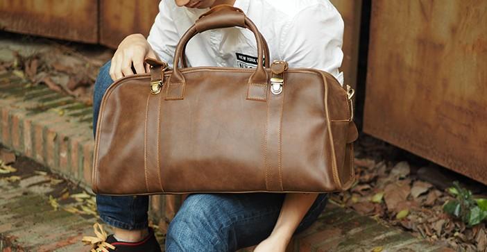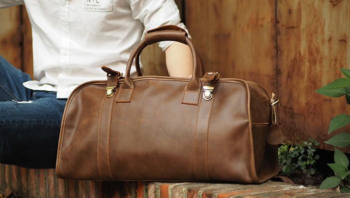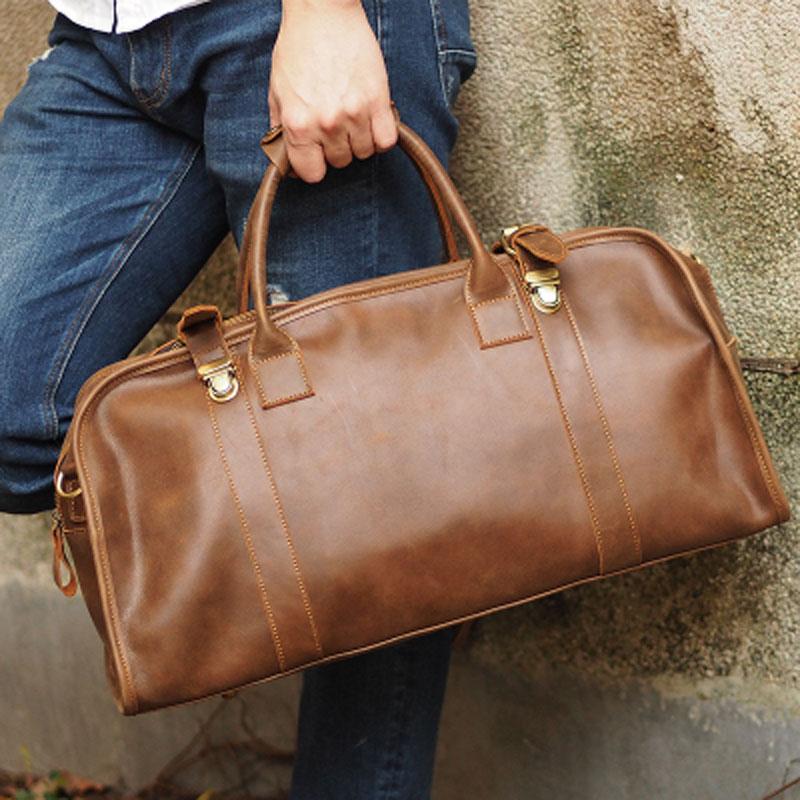 Design: Cool Leather Mens Overnight Bag Weekender Bag Vintage Travel Bags Duffle Bag for Men