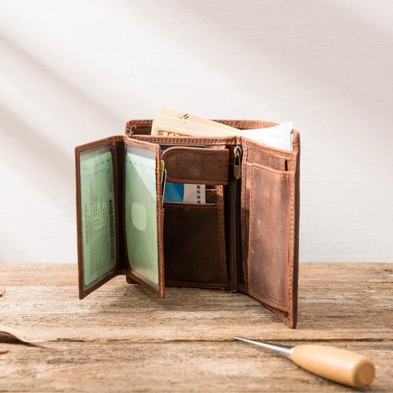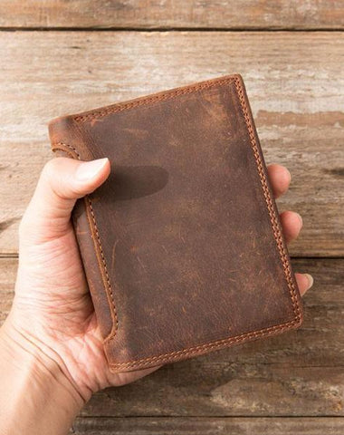 Design: Cool Leather Mens Small Wallets Bifold Vintage Slim billfold Wallet for Men