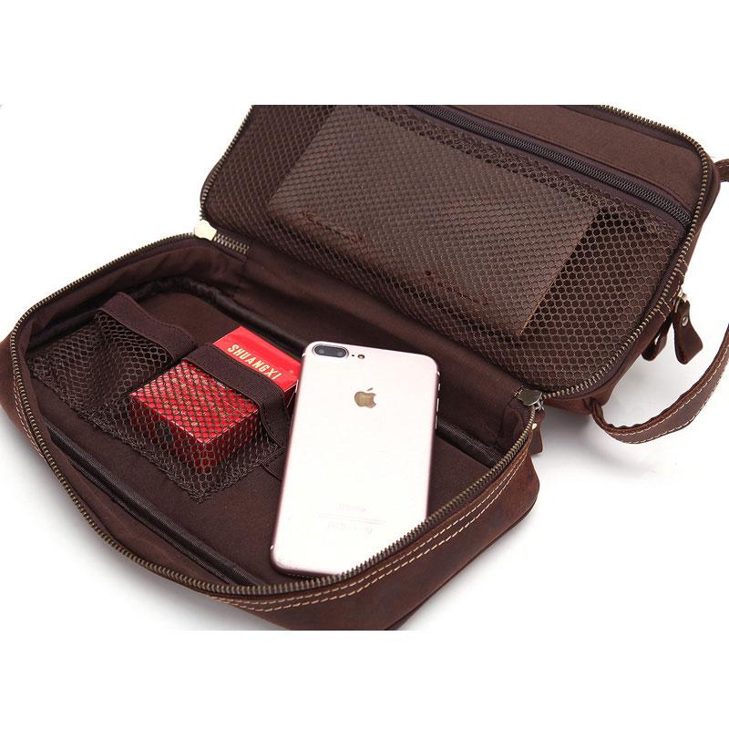 Design: Cool Leather Mens Zipper Wristlet Bag Vintage Clutch Zipper Bag for Men