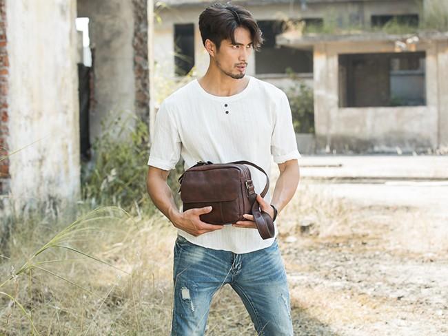 Design: Cool Small Mens Leather Camel Bag Messenger Bags Shoulder Bags for Men