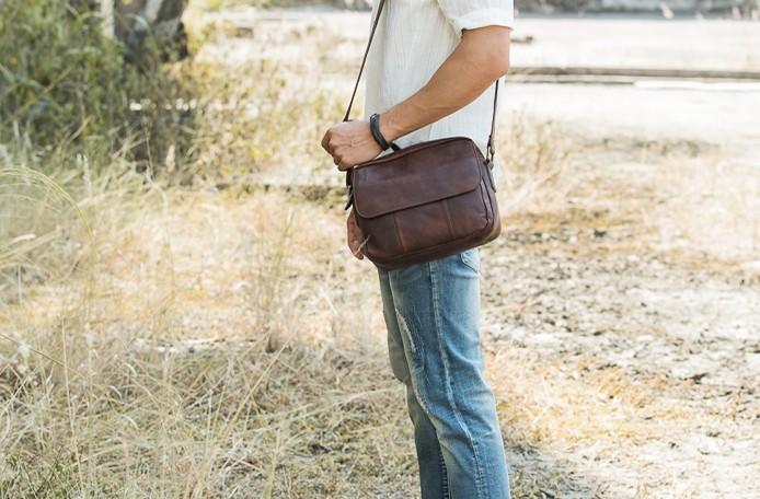 A small coffee leather messenger bag for men, with dimensions of 26cm x 21.5cm x 10cm, is the epitome of style, functionality, and durability. This compact yet spacious accessory is crafted from the finest leather, ensuring a luxurious feel and a robust build that can withstand the rigors of daily use, travel, and work.