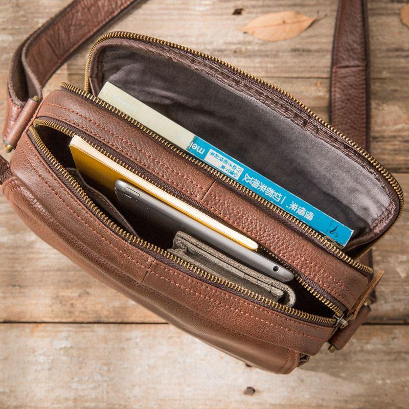 In conclusion, this small coffee leather messenger bag for men is a versatile and elegant accessory that combines superior craftsmanship with practical features. Its thoughtful design, high-quality leather, and multiple pockets make it a perfect choice for anyone looking for a reliable and stylish bag for daily use, travel, or work.
