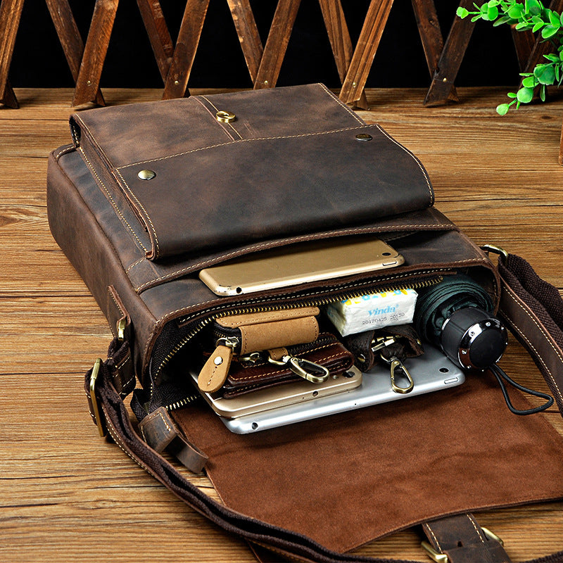 Design: Cool Mens Leather Vintage Small Side Bag Small Messenger bag Shoulder bag For Men