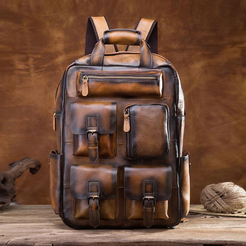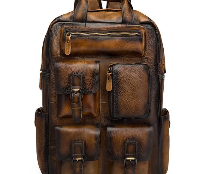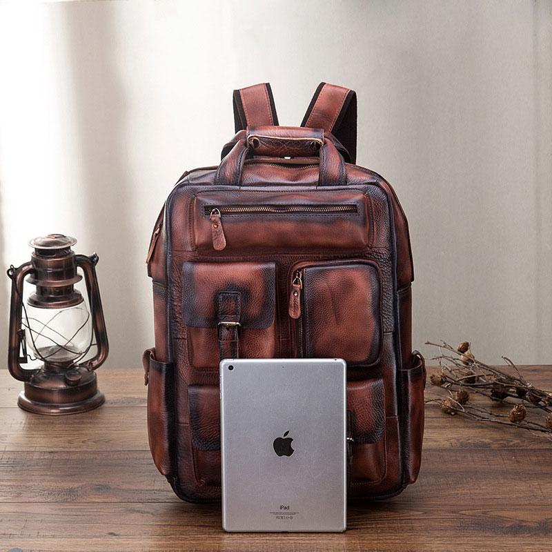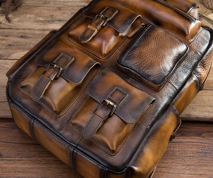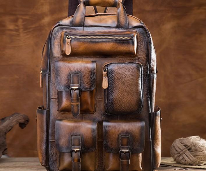 Design: Cool Mens Vintage Leather Backpack School Backpack Travel Backpack for men