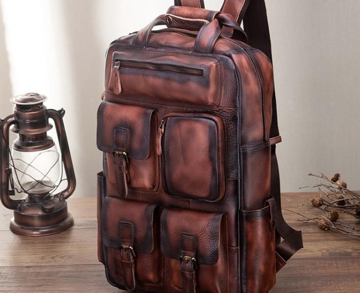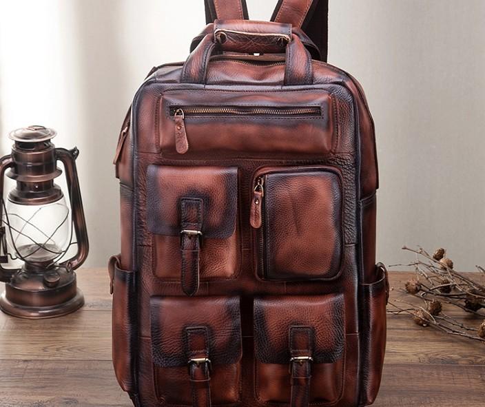 Style: Cool Mens Vintage Leather Backpack School Backpack Travel Backpack for men