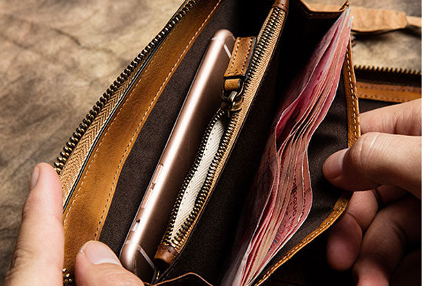 Slots: 2 full size bill slots, 12 card holders,1 phote slot, 1 zip slot,1 slot