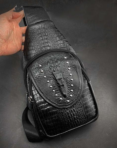 Style: Badass Black Leather Men's Sling Bag Chest Bag One shoulder Backpack Sling Bag For Men