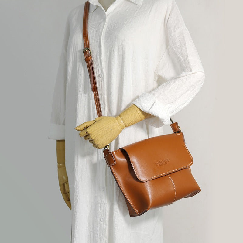 Design: Cute Brown LEATHER Side Bag Handmade WOMEN Brown Crossbody BAG Phone Purse FOR WOMEN