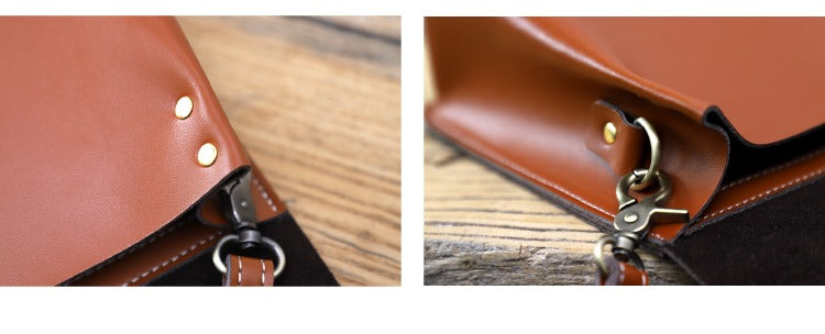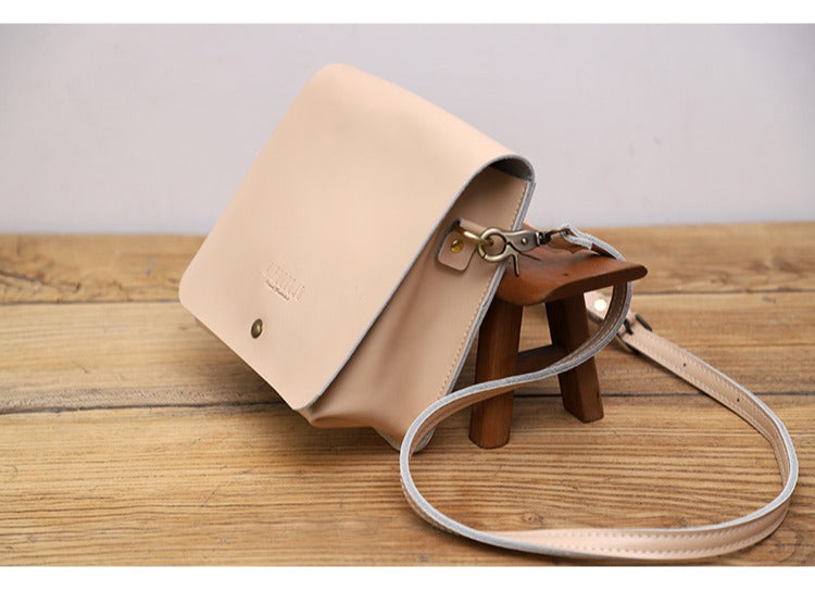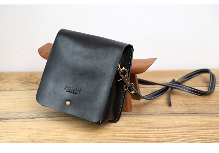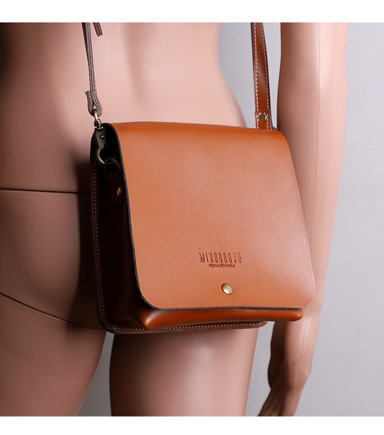 Design: Cute Brown LEATHER Square Side Bag Handmade WOMEN Phone Crossbody BAG Purse FOR WOMEN