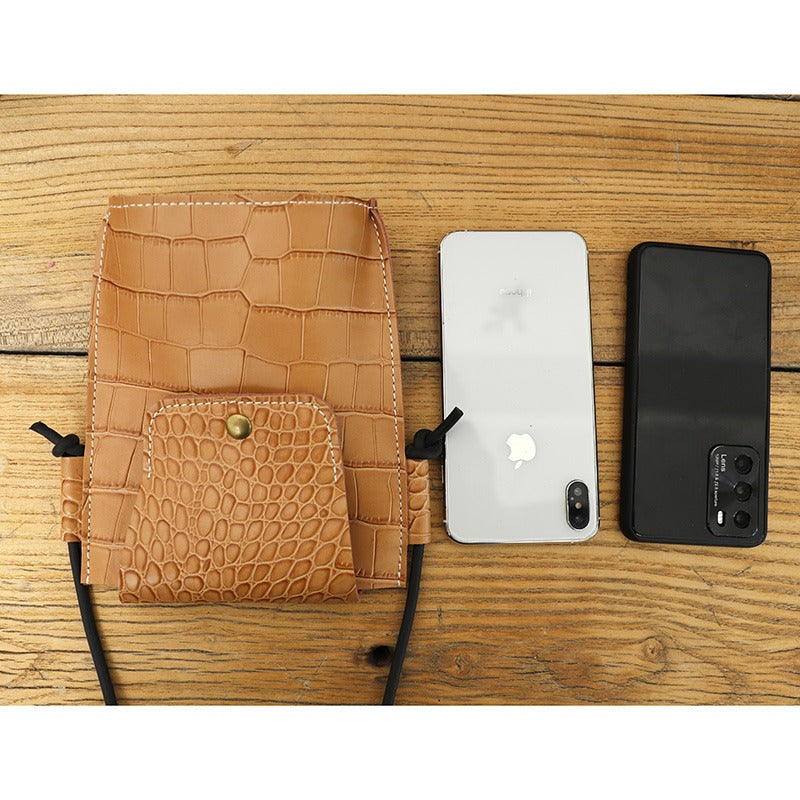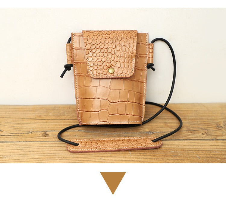 Cute LEATHER Small Side Bag Camel Crocodile Pattern WOMEN Crossbody BAG Purse FOR WOMEN