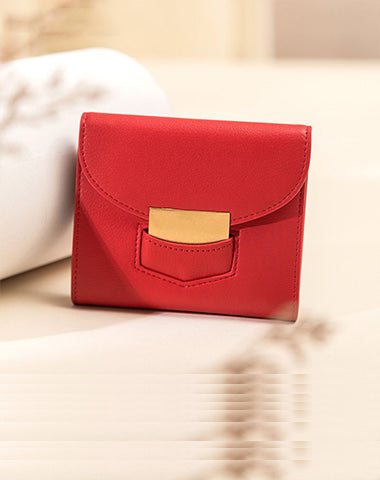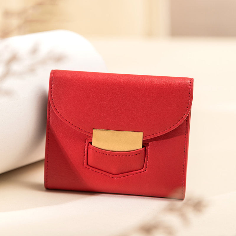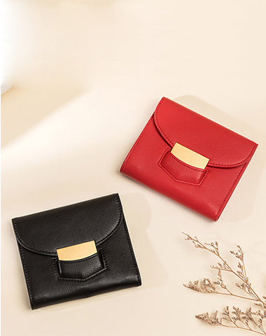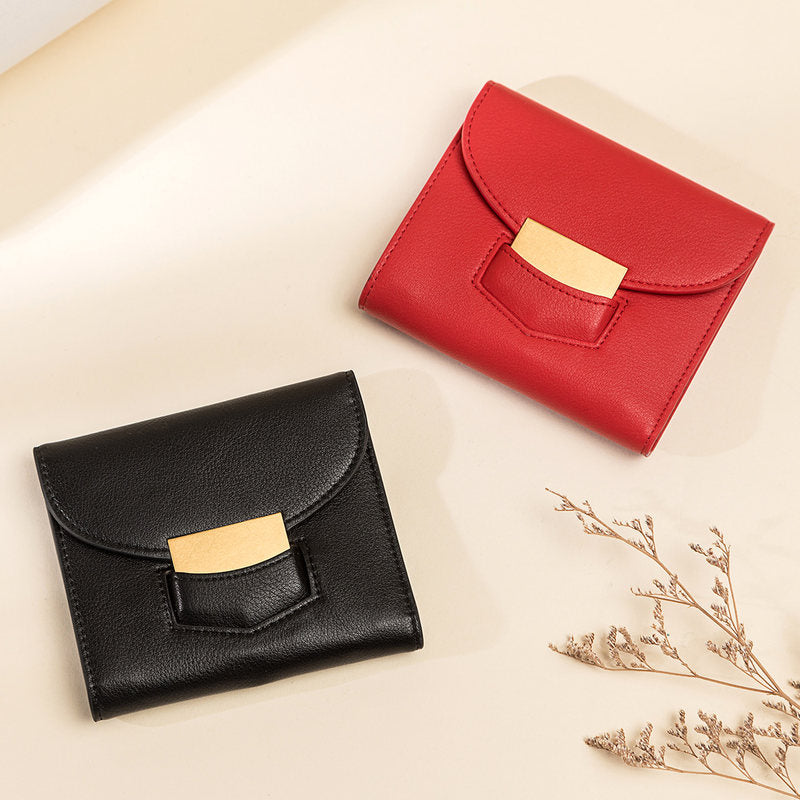 Style: Cute Women Black Vegan Leather Small Wallet Billfold Vertical Red Card Wallet For Women