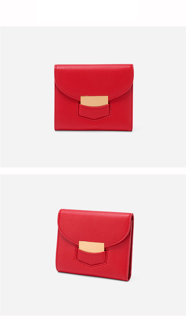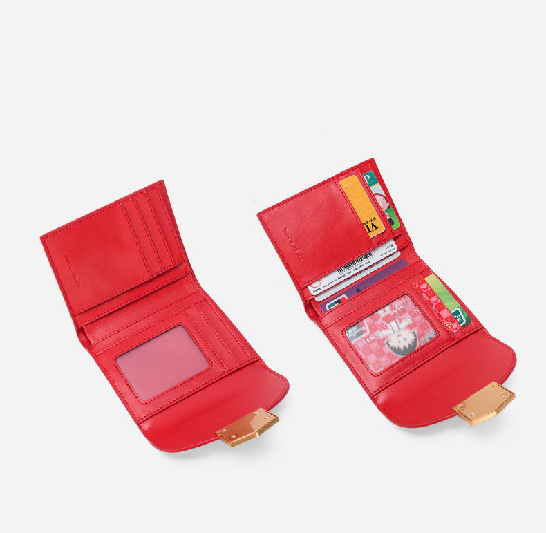 Design: Cute Women Black Vegan Leather Small Wallet Billfold Vertical Red Card Wallet For Women