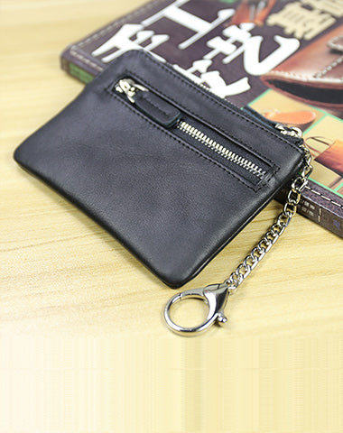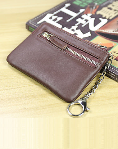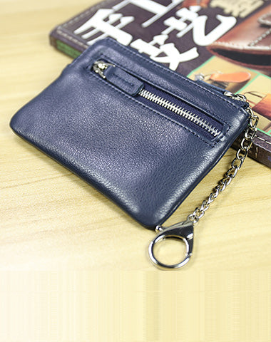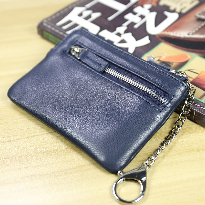 Cute Women Coffee Leather Mini Zip Billfold Wallet with Keychain Navy Coin Wallet Small Zip Change Wallet For Women