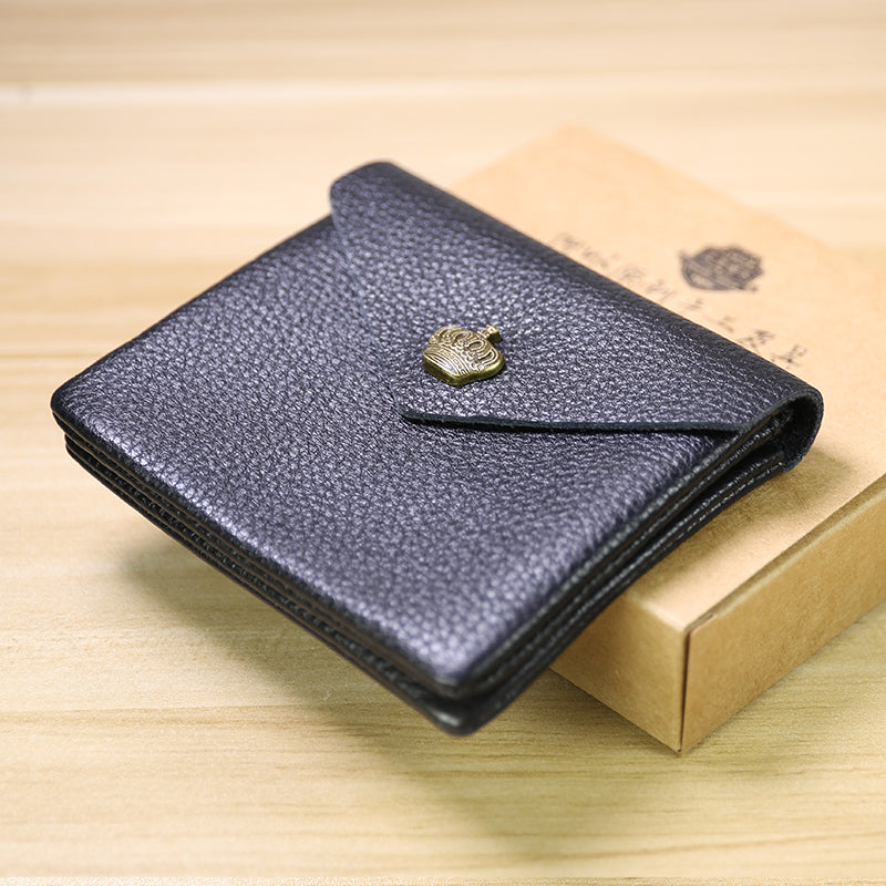 Style: Cute Women Crown Black Leather Mini Billfold Wallet Coin Wallets Slim Change Wallets For Women