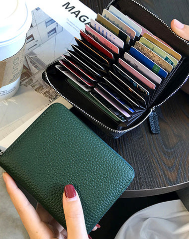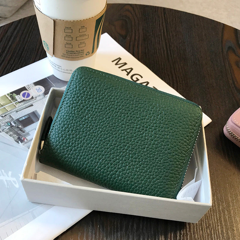Style: Cute Women Green Leather Card Holders Small Zip Card Wallet Card Holders Wallet For Women