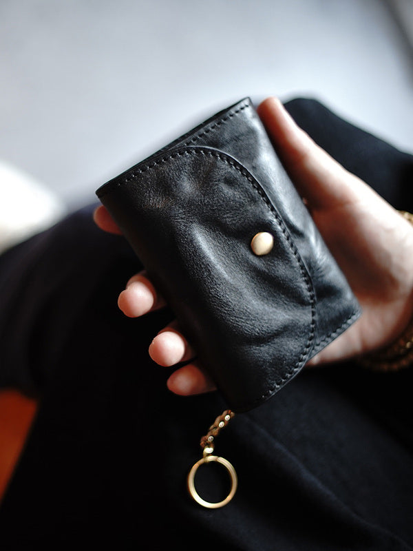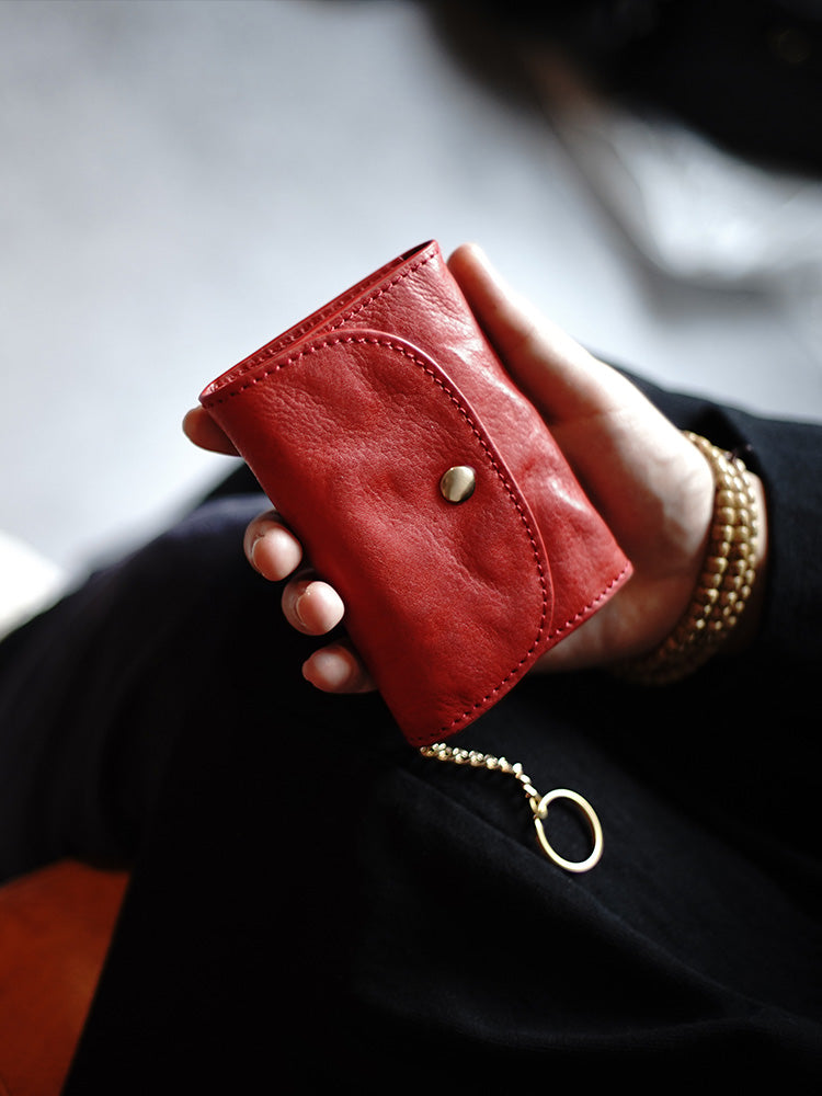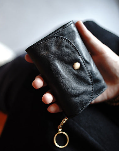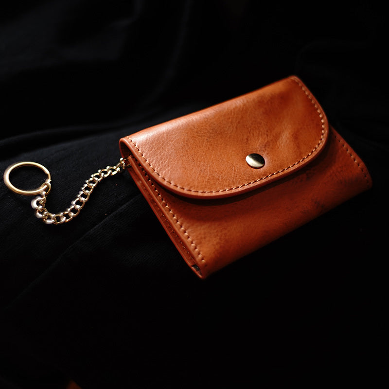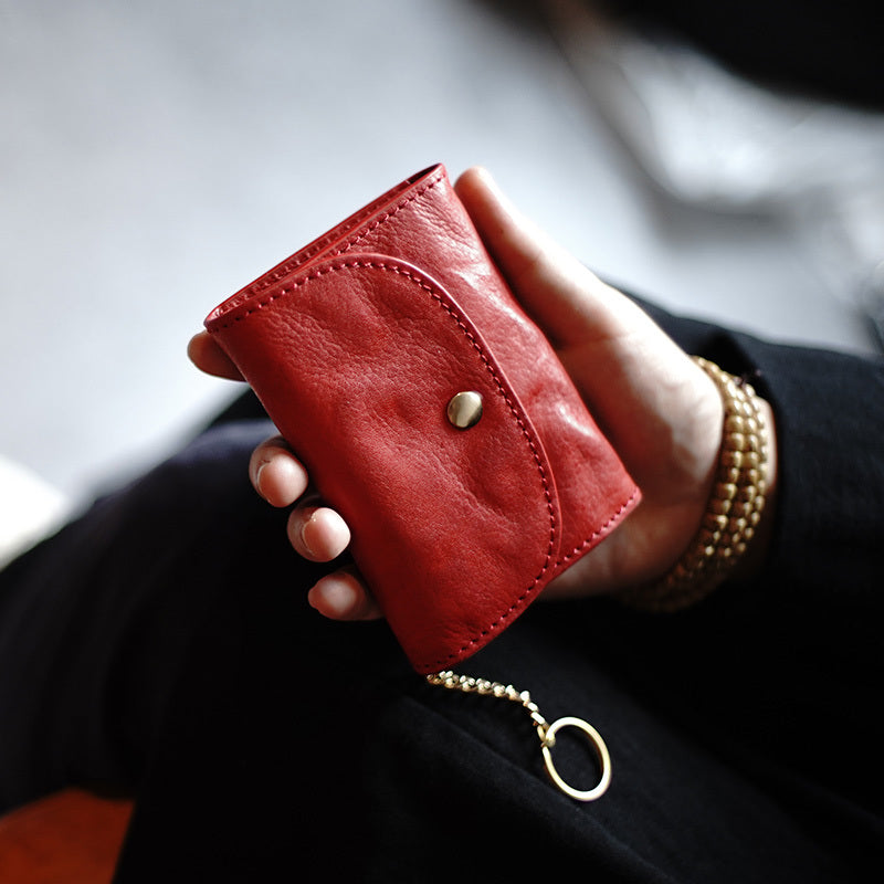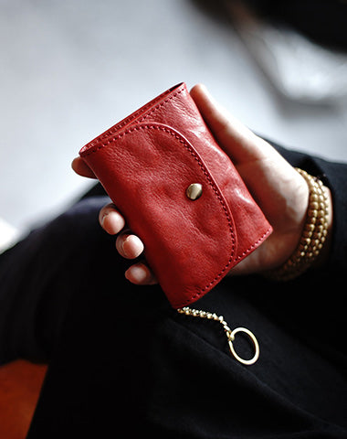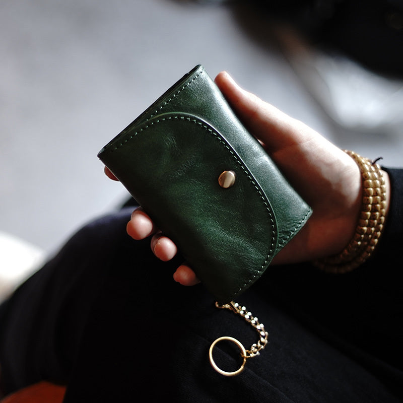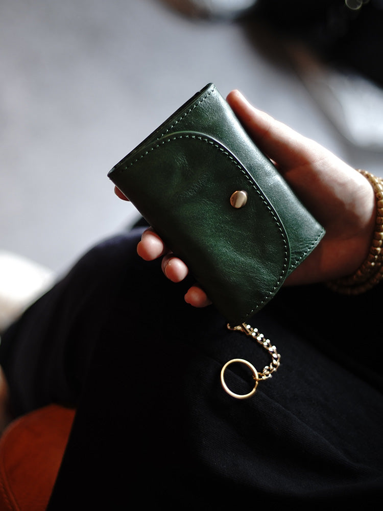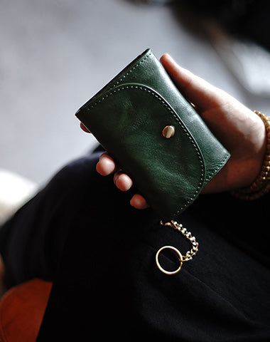 Design: Cute Women Green Leather Mini Wallet with Keychain Billfold Minimalist Coin Wallet Small Zip Change Wallet For Women