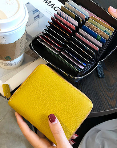 Style: Cute Women Orange Leather Card Holders Small Zip Card Wallet Card Holders Wallet For Women
