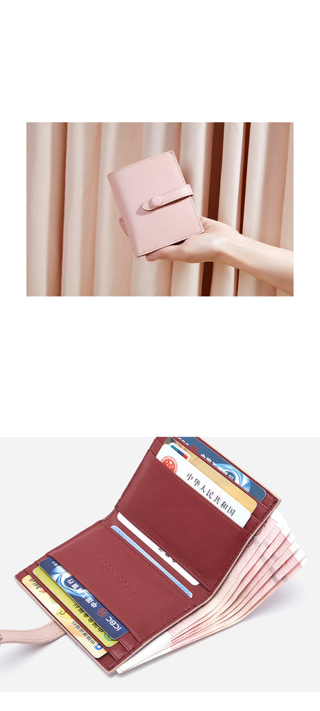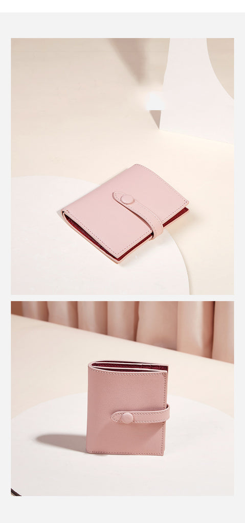 Style: Cute Women Pink Leather Small Wallet Billfold Vertical Card Wallet For Women