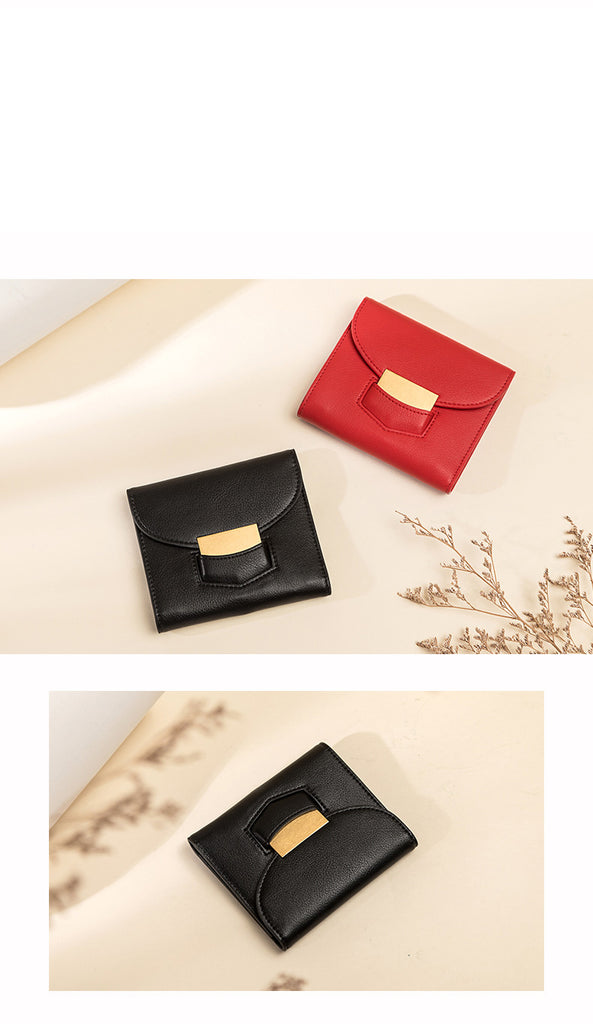Design: Cute Women Black Vegan Leather Small Wallet Billfold Vertical Black Card Wallet For Women