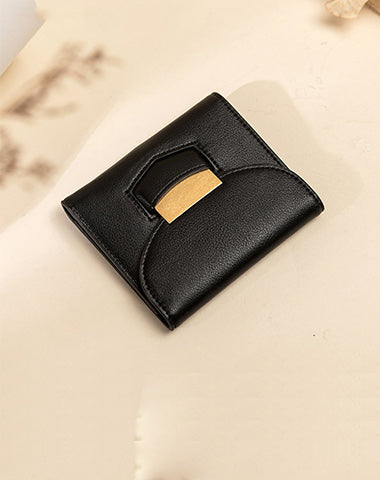 Style: Cute Women Black Vegan Leather Small Wallet Billfold Vertical Black Card Wallet For Women