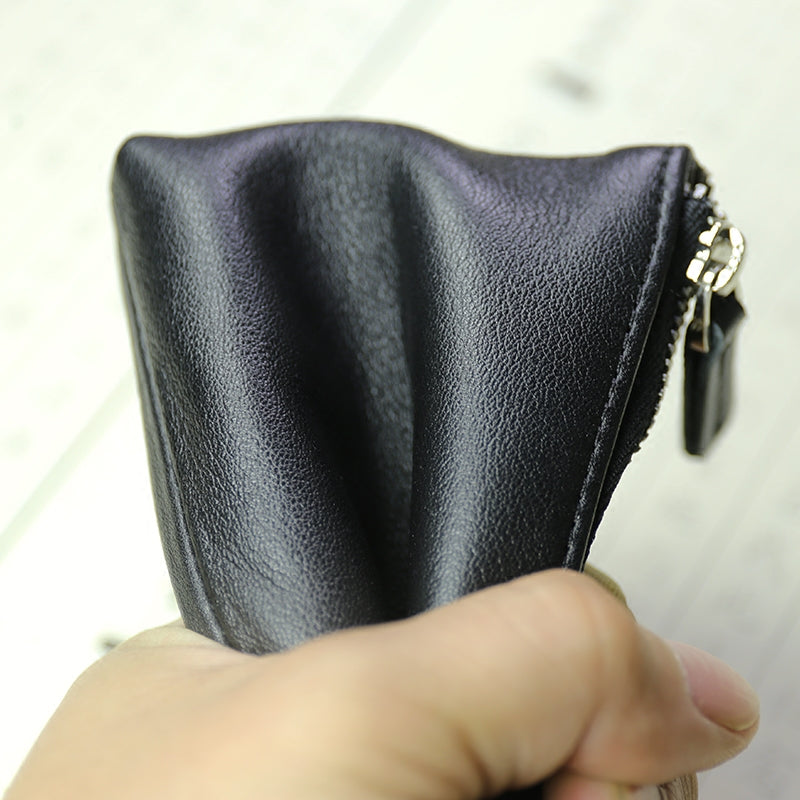 Style: Cute Women Slim Coffee Leather Mini Zip Coin Wallet Billfold Small Zip Change Wallet For Women