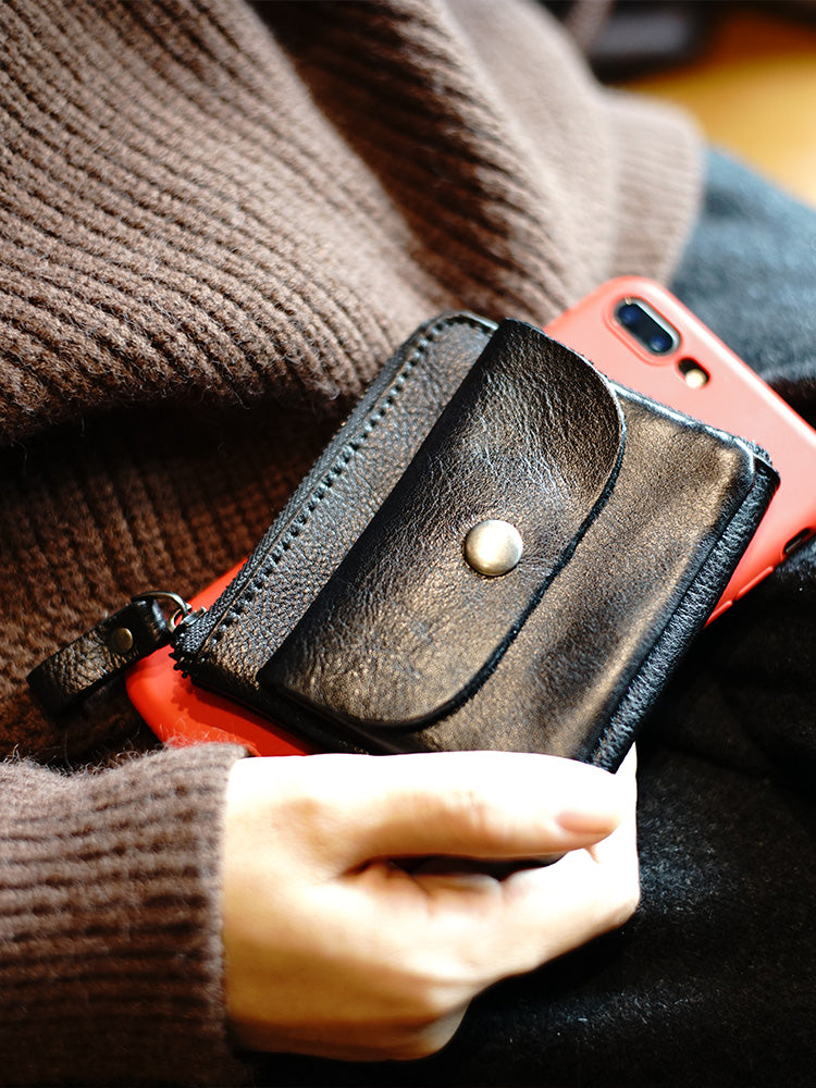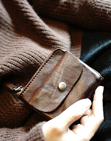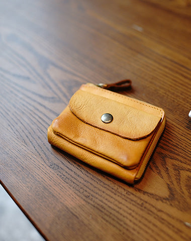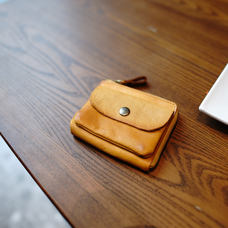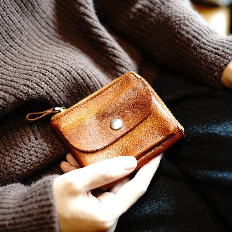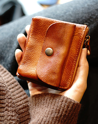 Design: Cute Women Tan Zip Leather Billfold Wallet Minimalist Zip Coin Wallet Change Wallet For Women