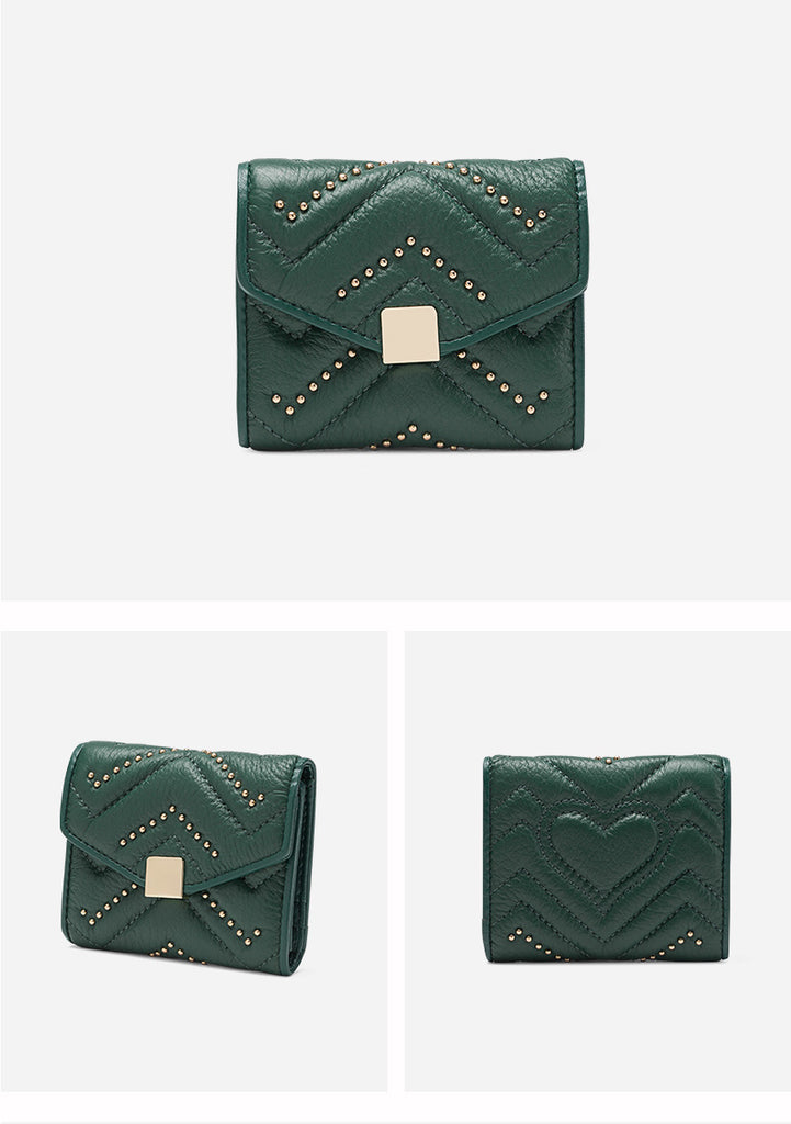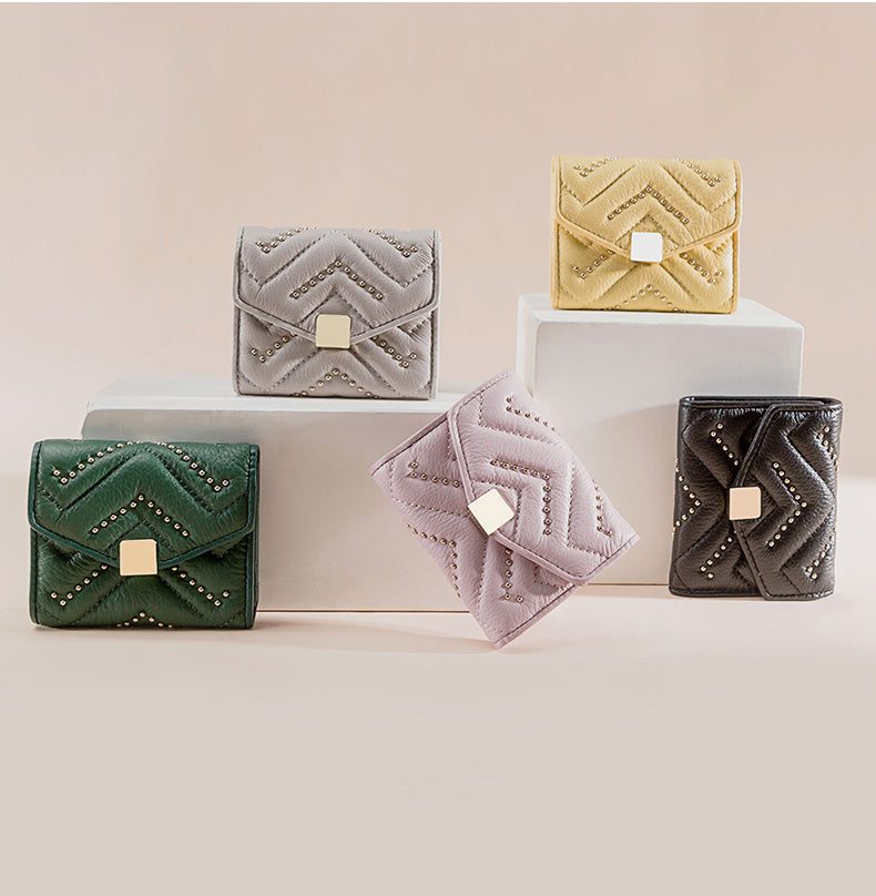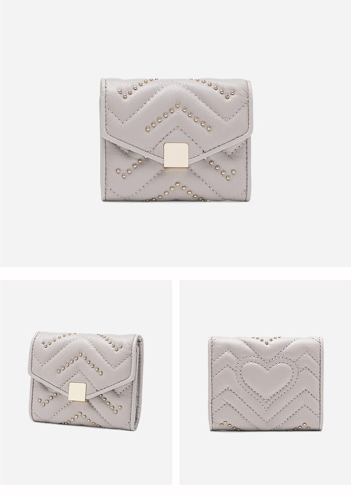 Design: Cute Womens Gray Leather Small Wallet with Rivets Slim Small Wallet For Women