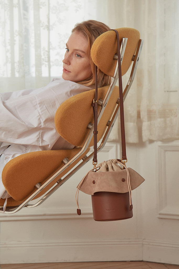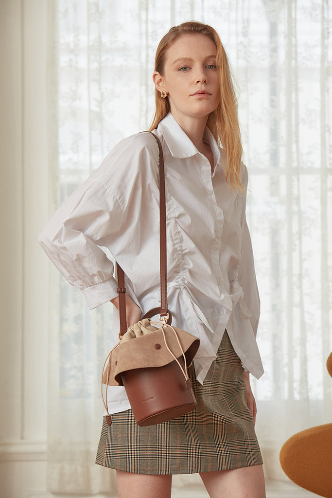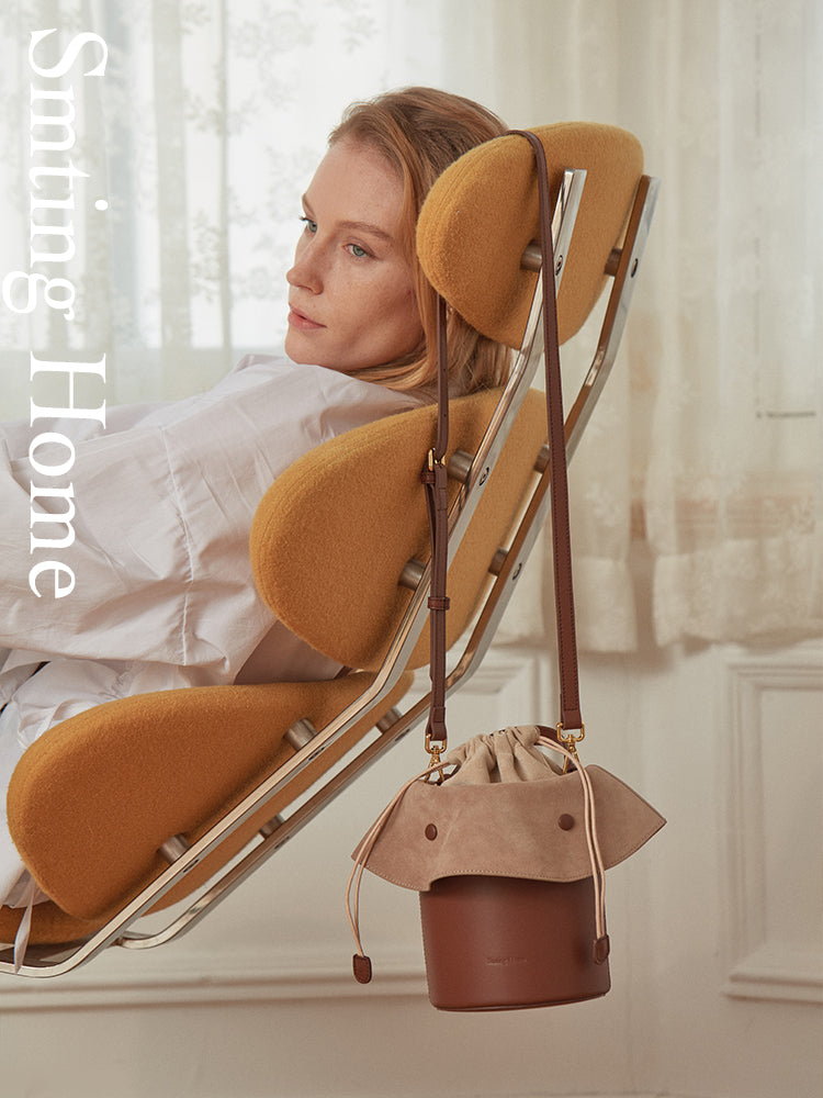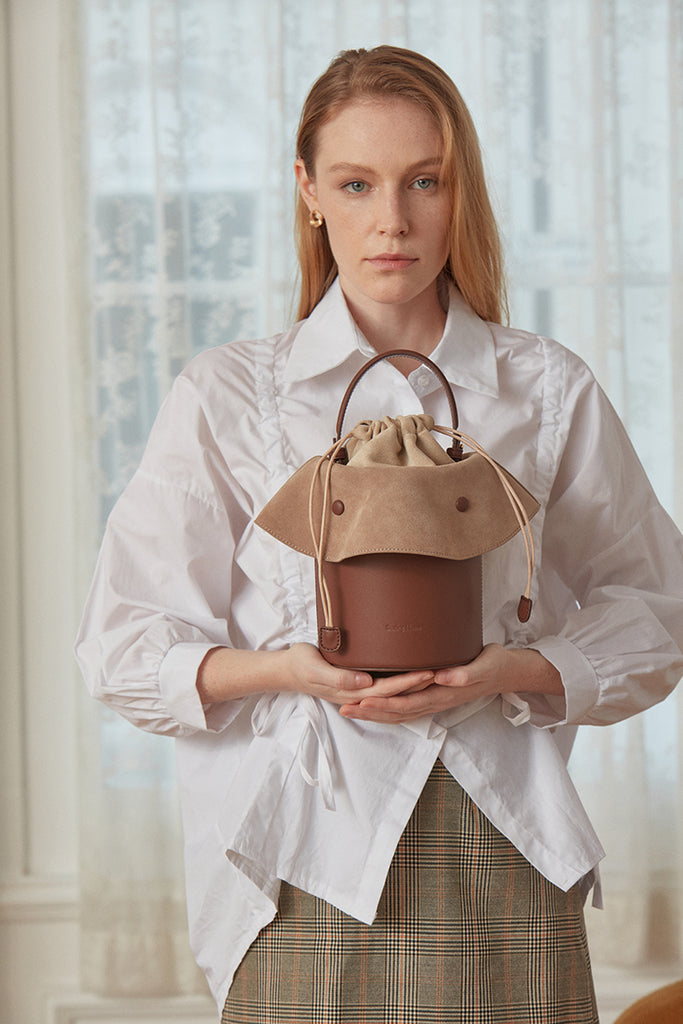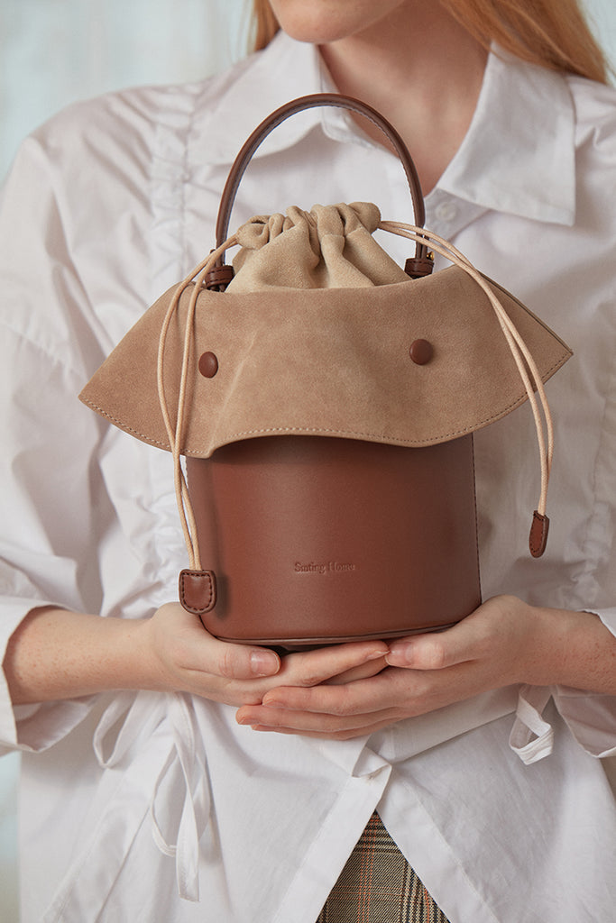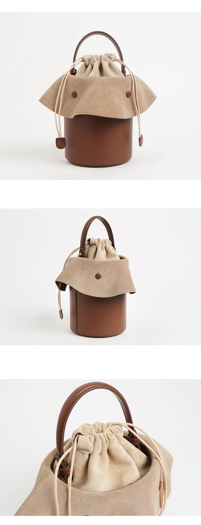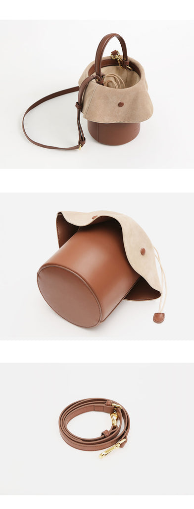 Design: Cute Womens Leather Barrel Handbag Purse Coffee Crossbody Purse Bucket Round Shoulder Bag for Women