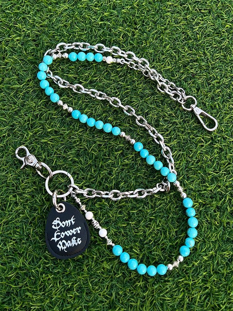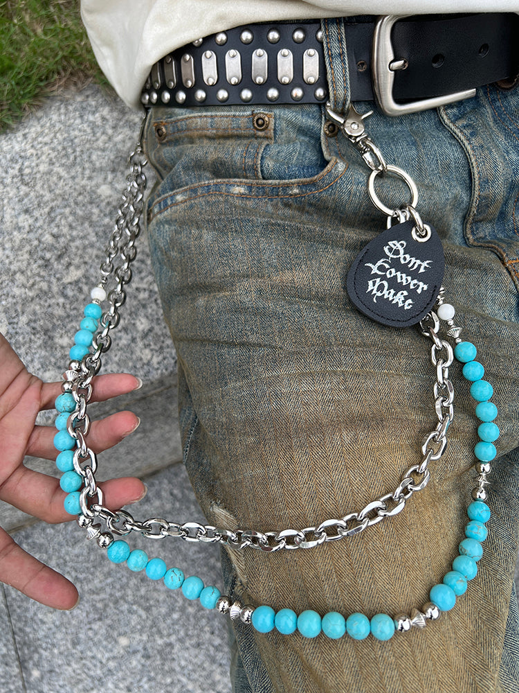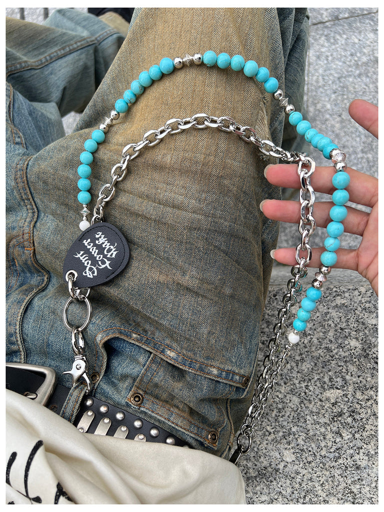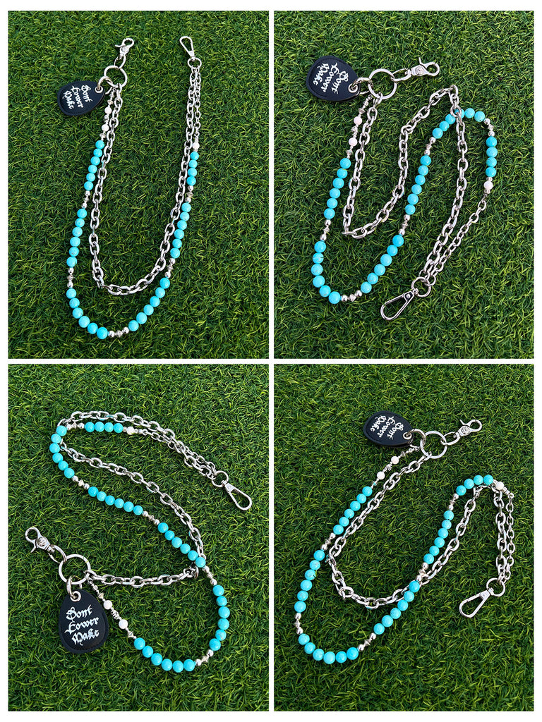 Introducing a truly unique accessory that redefines wallet chain aesthetics �our exceptional Ball Wallet Chain. This 78cm masterpiece features an innovative double-chain design that beautifully merges natural elegance with industrial strength. The first chain showcases carefully strung turquoise and white beads, while the second chain features a durable stainless steel construction. This stunning Double Wallet Chain creates a perfect harmony between organic beauty and urban edge, making it a must-have for fashion pioneers.