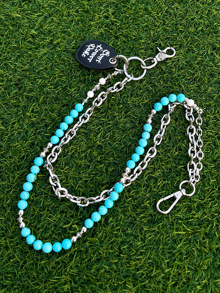 Ball Wallet Chain - Turquoise & Steel Double Chain Design