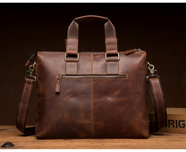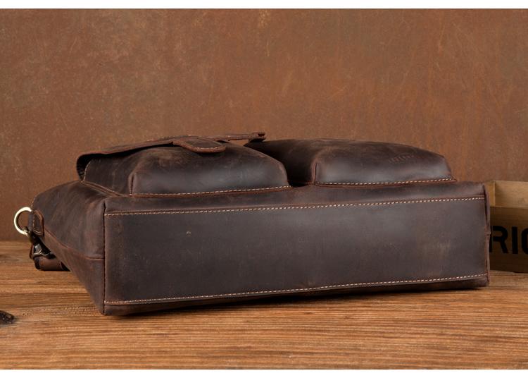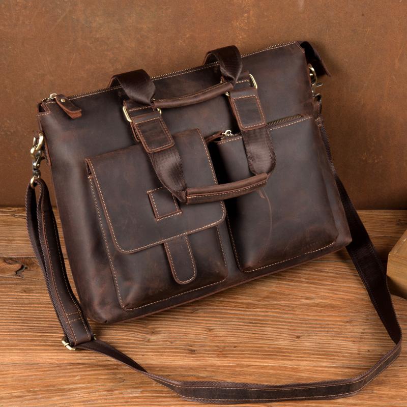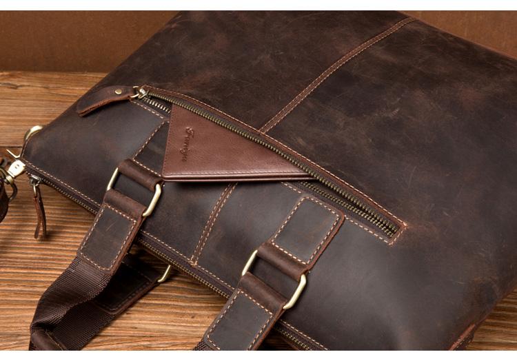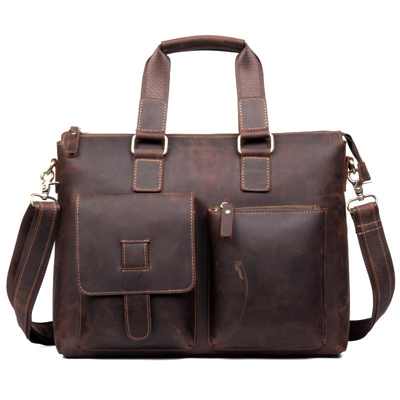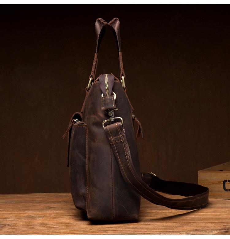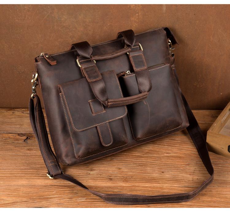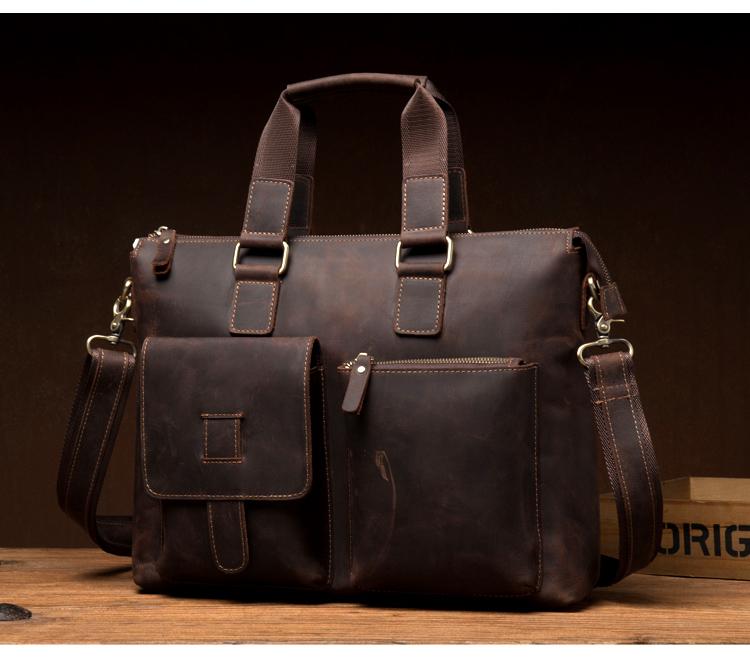 Design: Dark Brown Leather Mens 15 inches Briefcase Laptop Bag Business Bag Brown Work Bag for Men