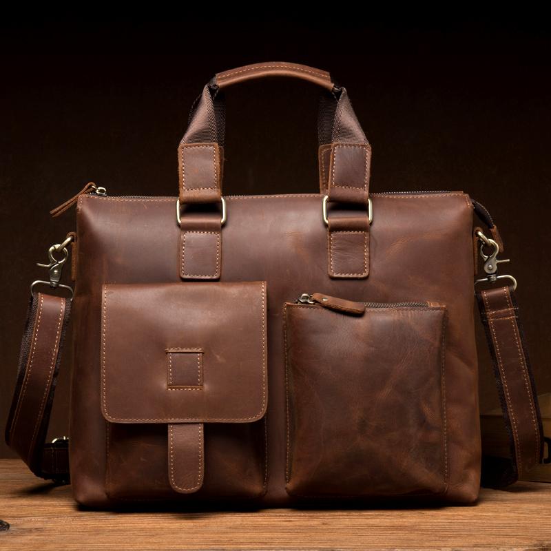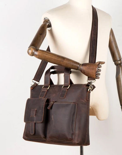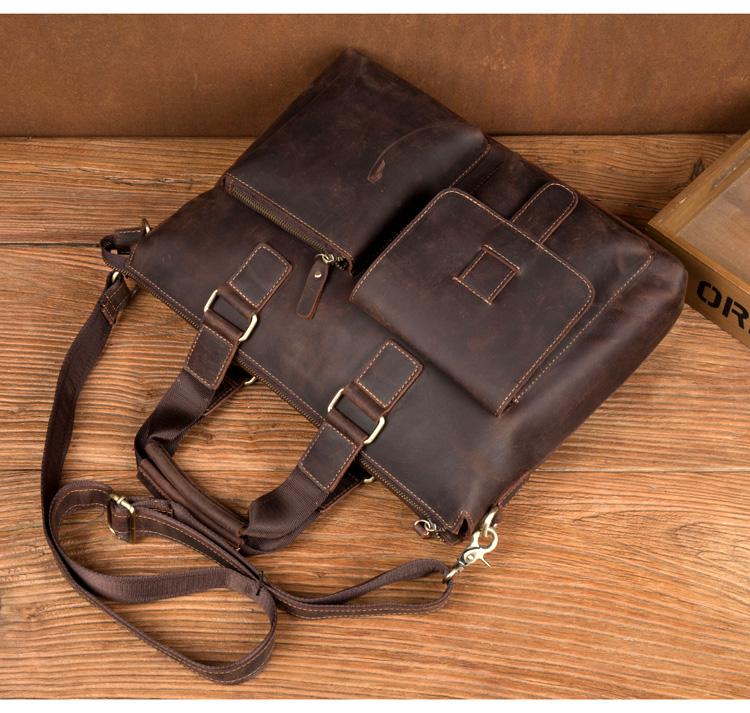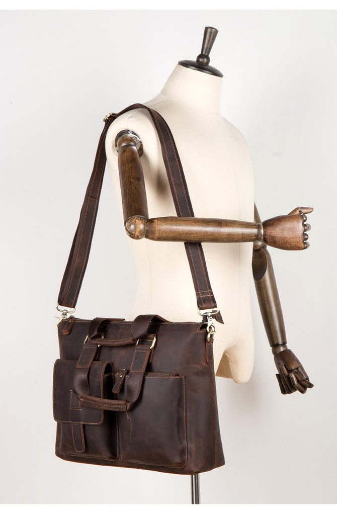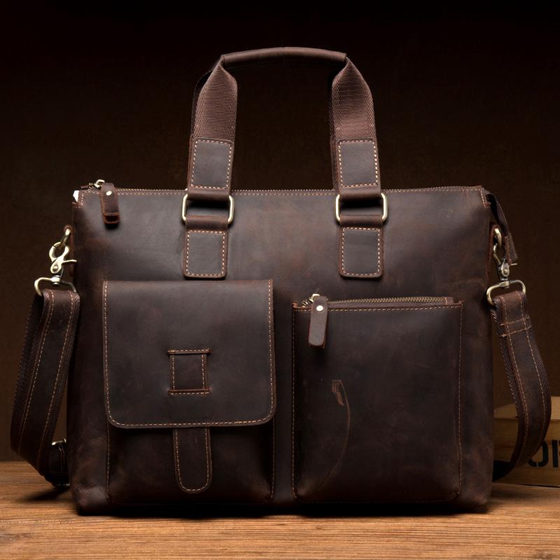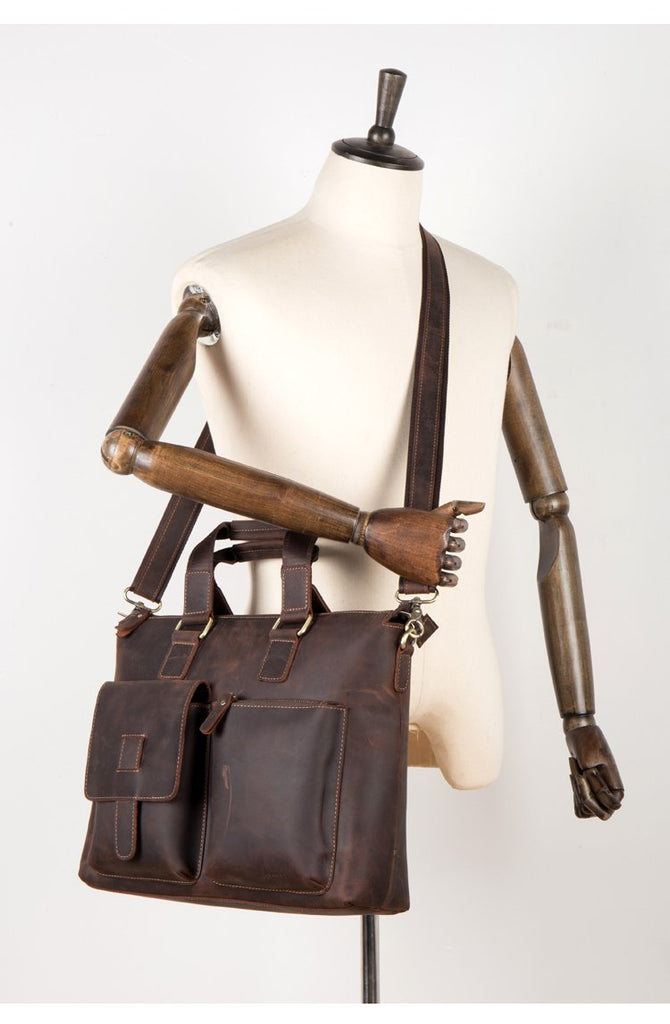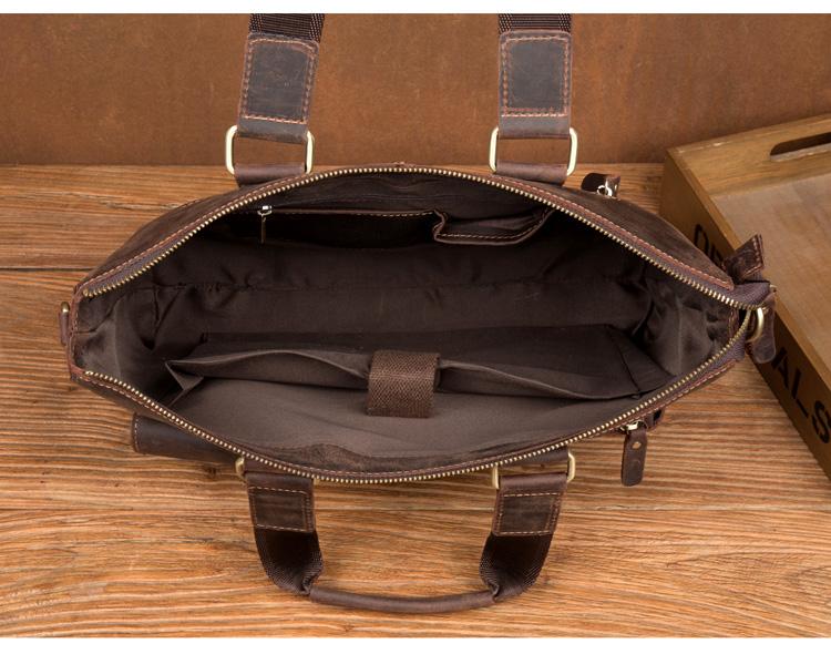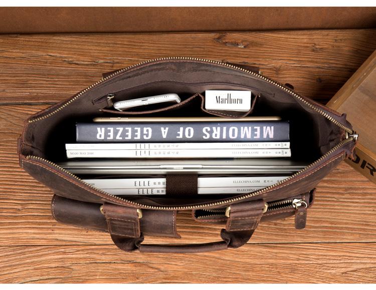 Design: Dark Brown Leather Mens 15 inches Briefcase Laptop Bag Business Bag Brown Work Bag for Men