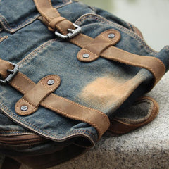 Design: Denim Blue Mens 12 inches Backpack School Backpack Blue Jean Travel Backpacks For Men