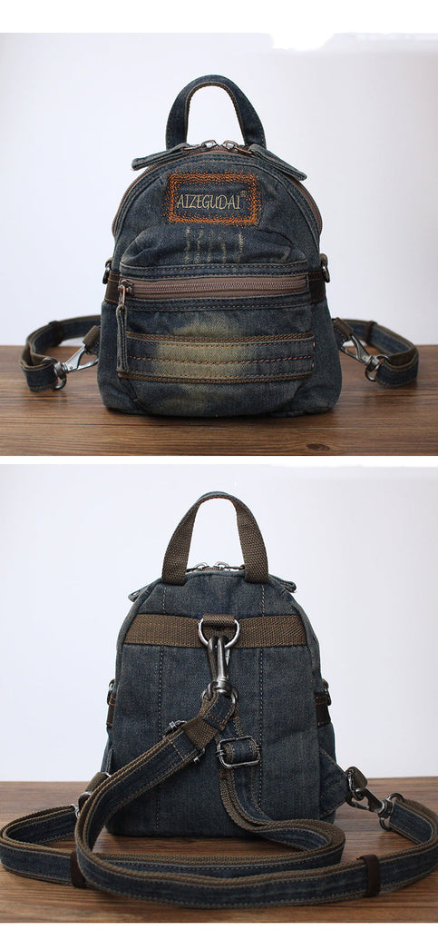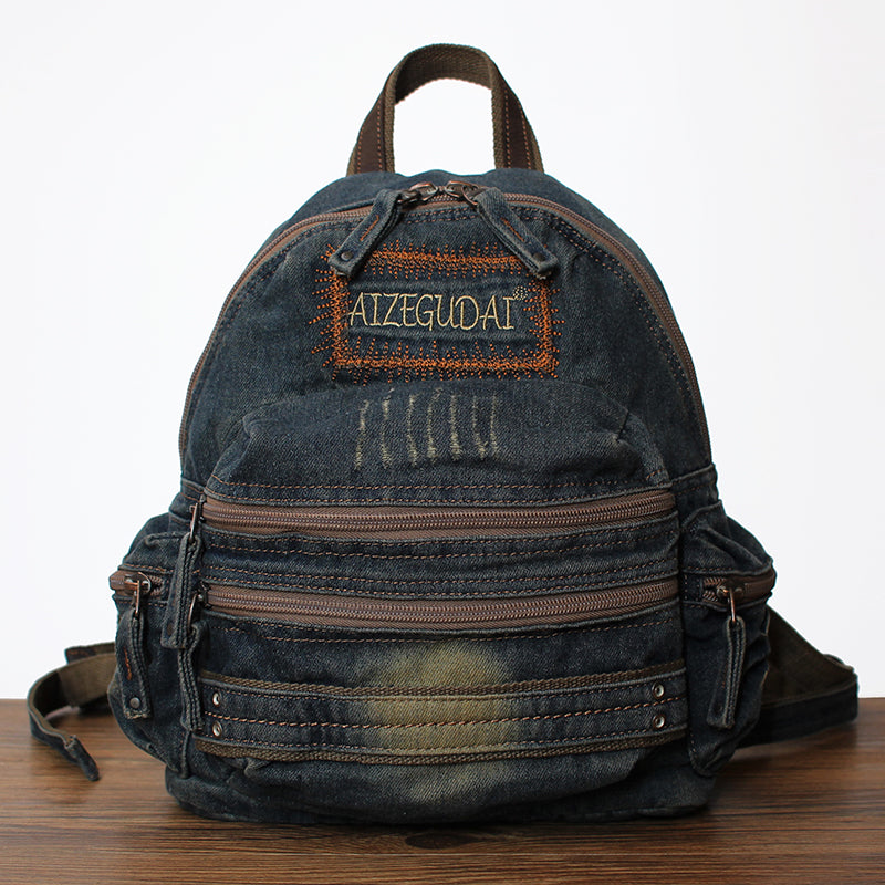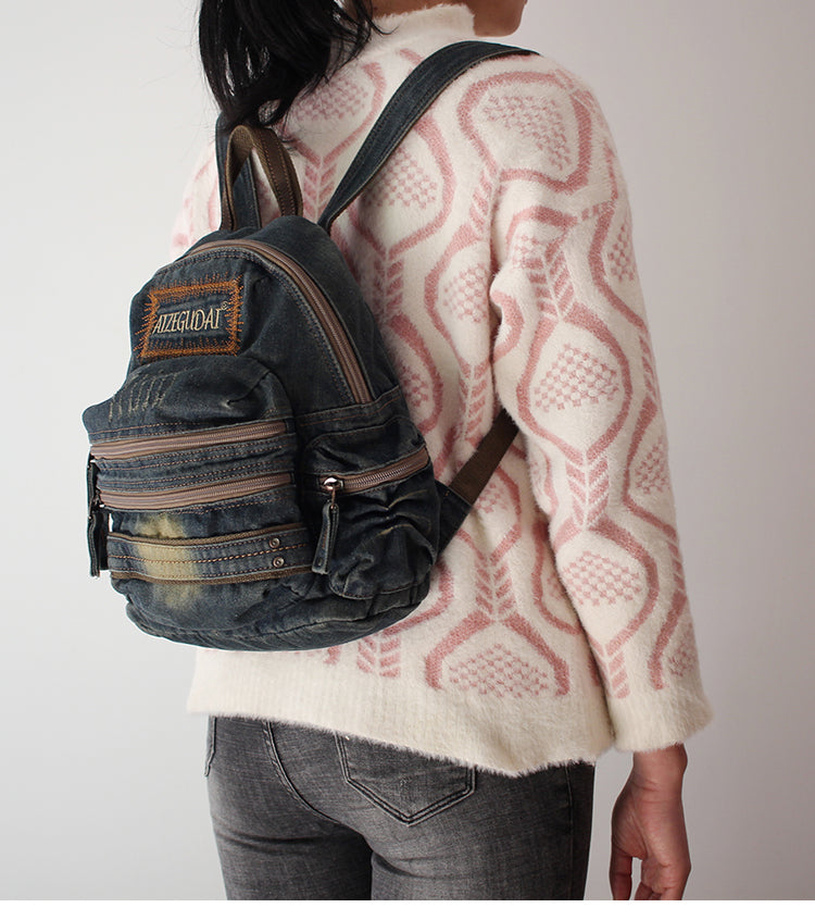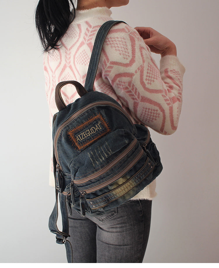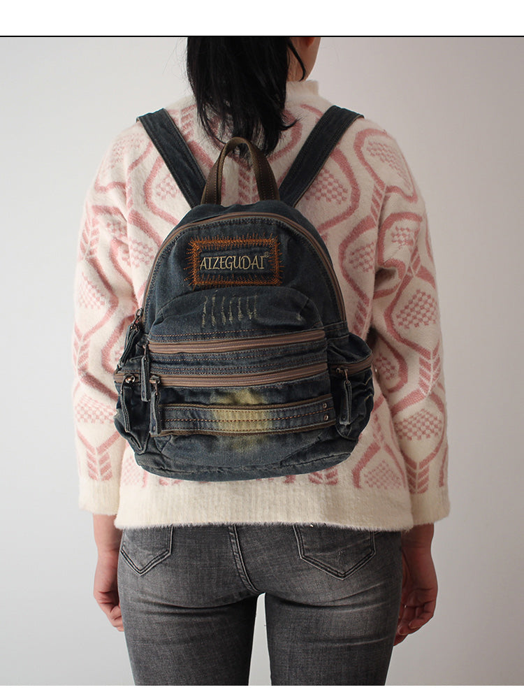Design: Denim Blue Womens Backpack School Backpacks Blue Vintage Denim Backpack For Women