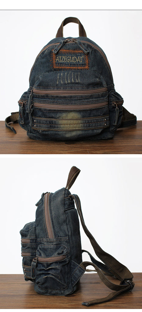 Style: Denim Blue Womens Backpack School Backpacks Blue Vintage Denim Backpack For Women