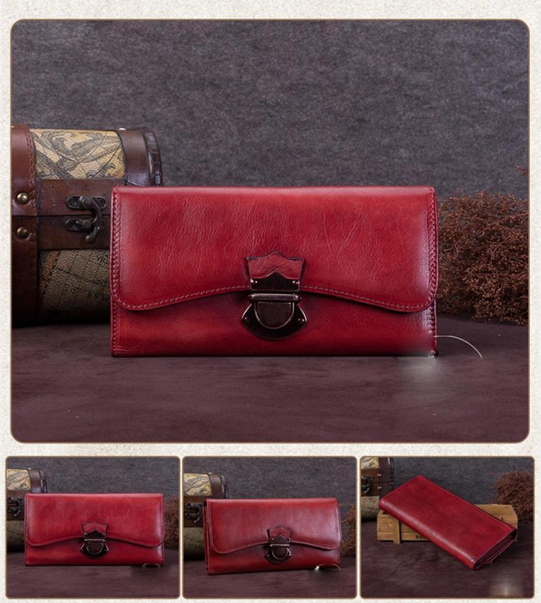 Vintage Bifold Leather Wallets For Women Unique Brown Womens Long Wallets