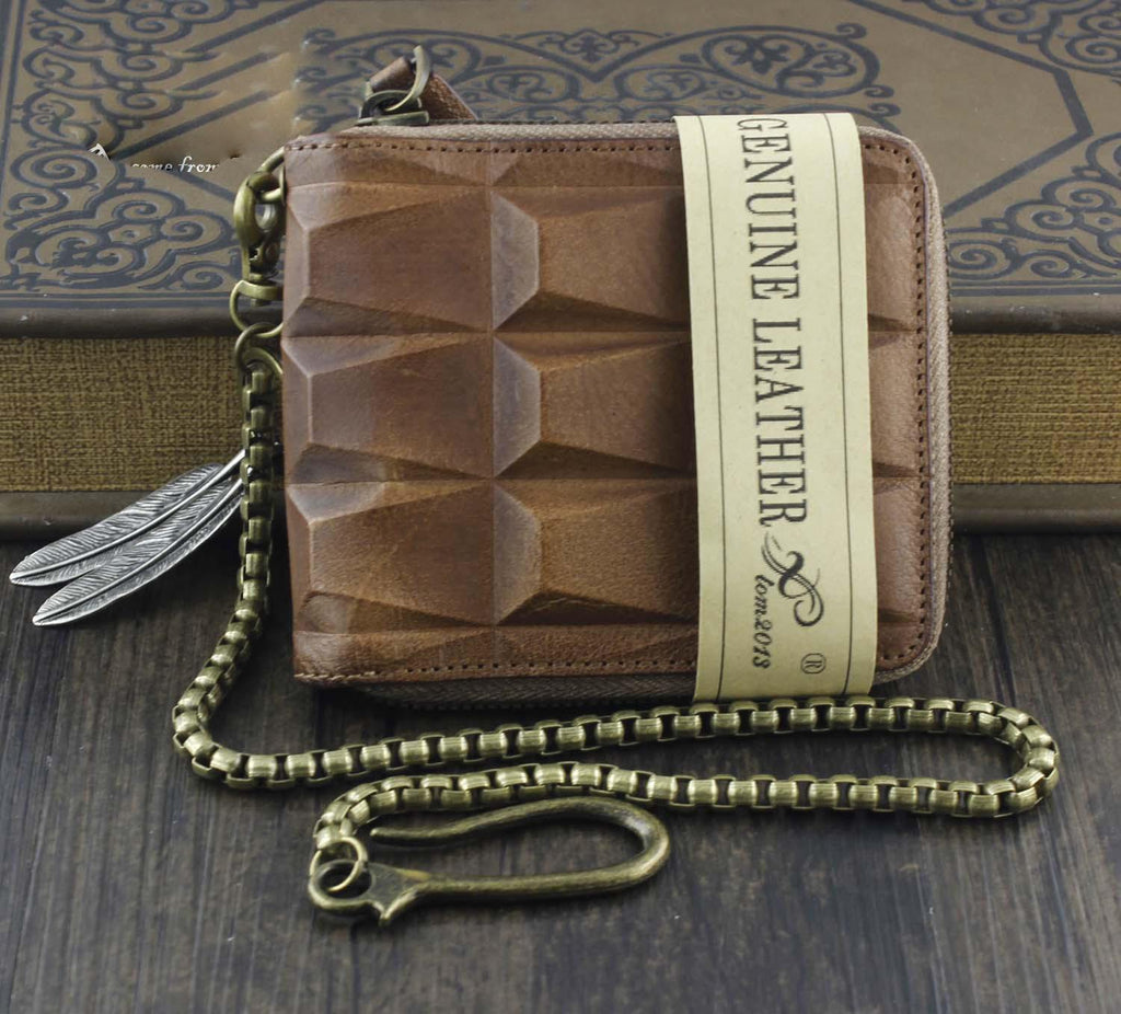 Design: Fashion Brown Leather Men's Small Zipper Biker Chain Wallet Wallet with Chain For Men