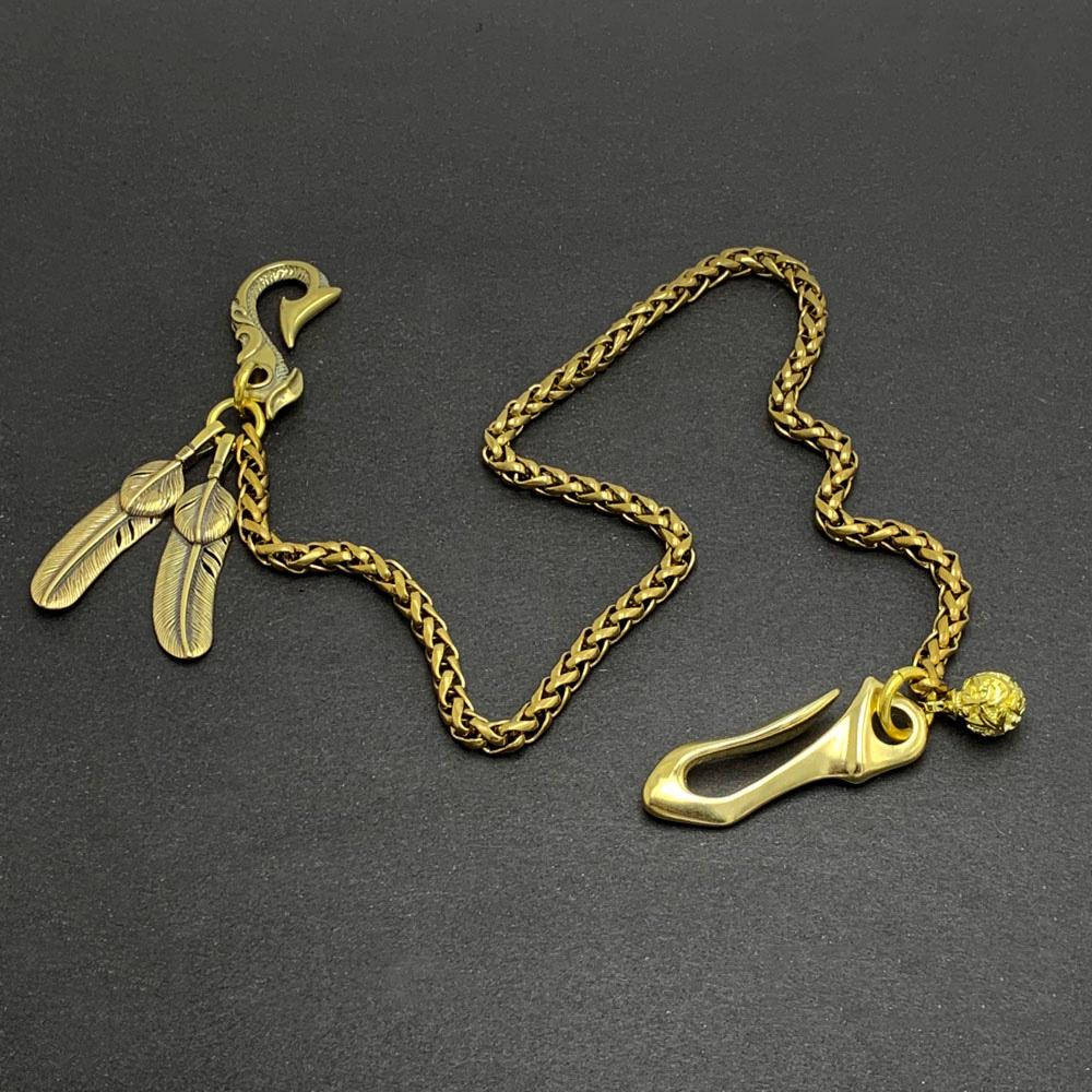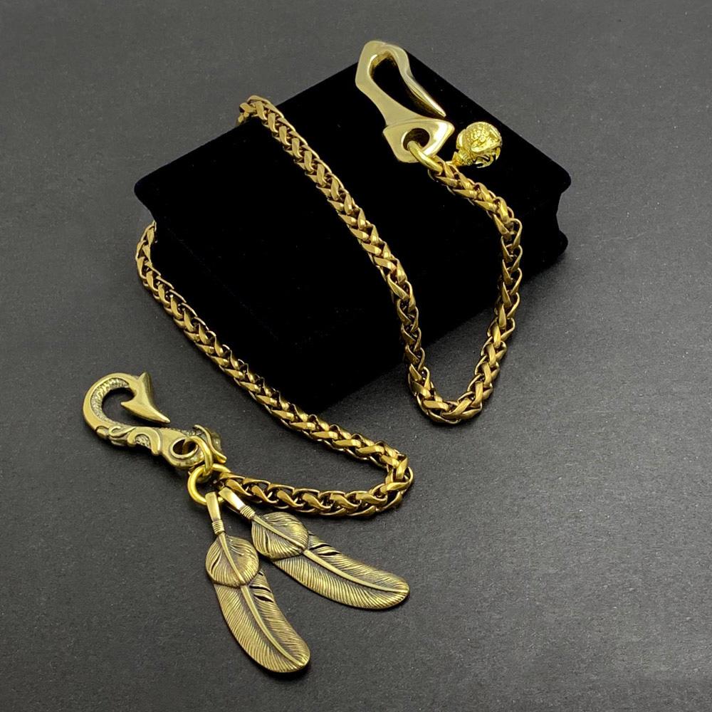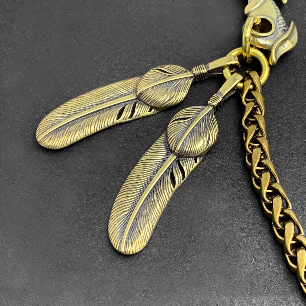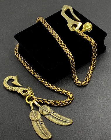 Style: Fashion Handmade Vintage Brass 18" Feather Key Chain Pants Chain Wallet Chain Motorcycle Wallet Chain for Men
