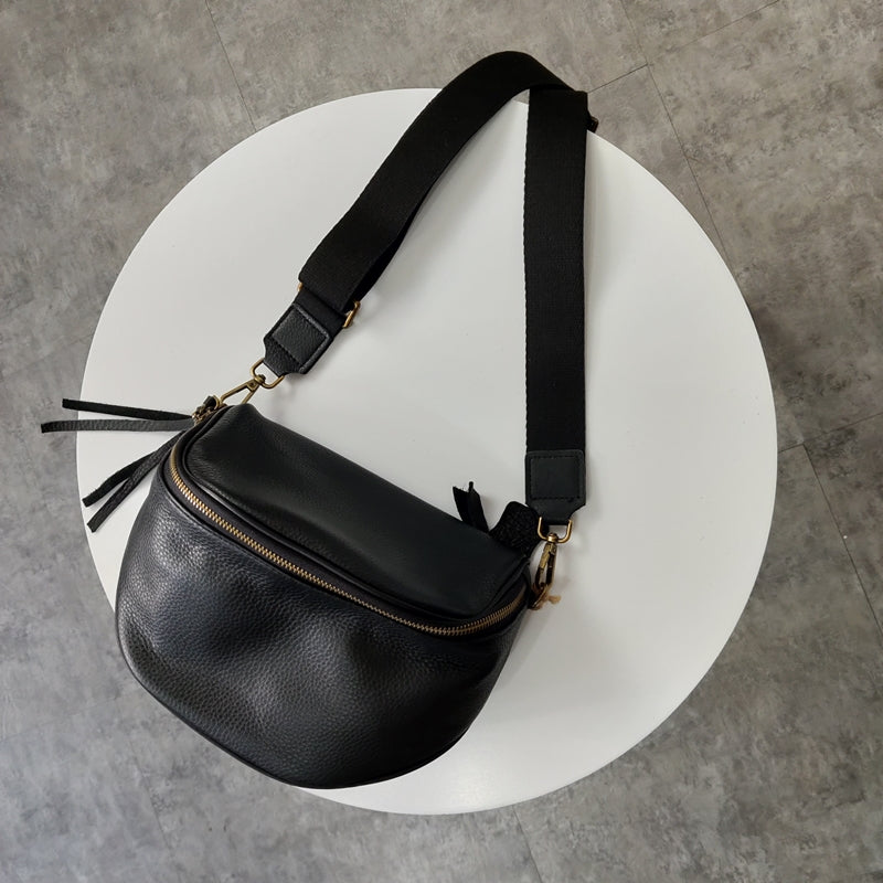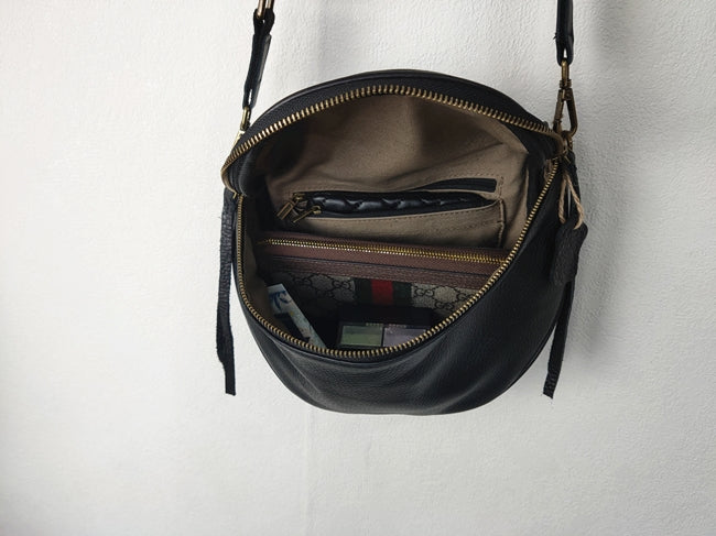 Fashion Women Black Leather Small Saddle Shoulder Bag Side Bag Black Saddle Crossbody Bag Purse For Women