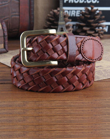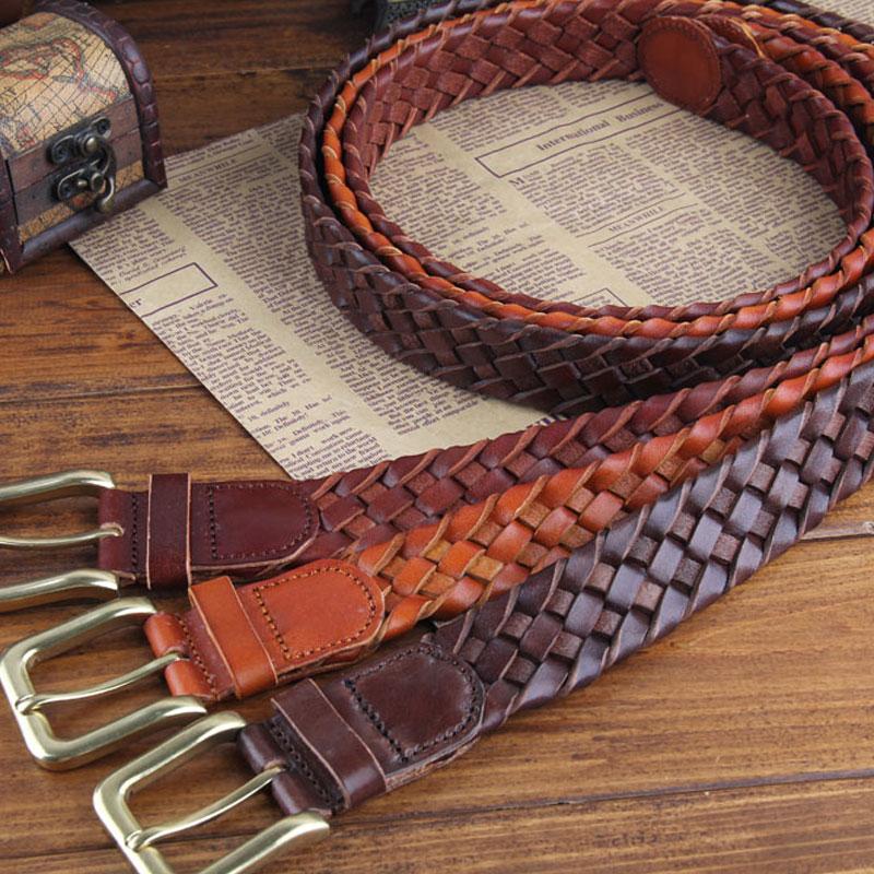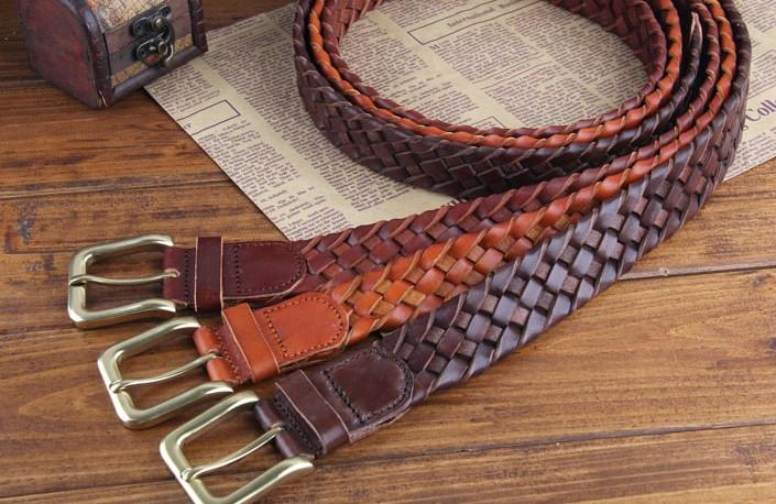 Design: Genuine Leather Braided Punk Rock Biker Trucker Mens Belt Men Black Coffee Belt for Men