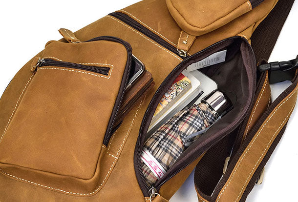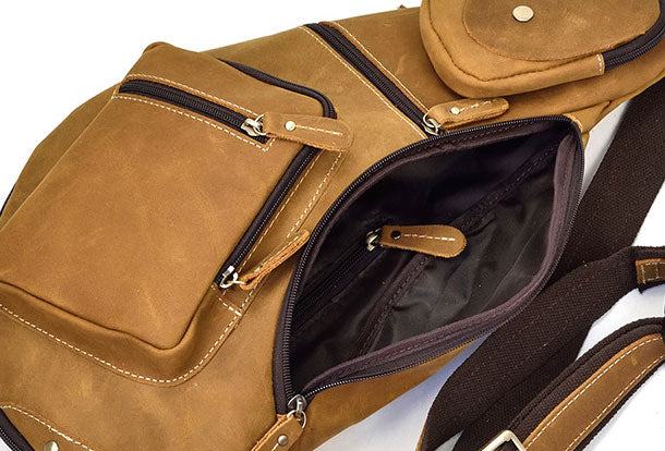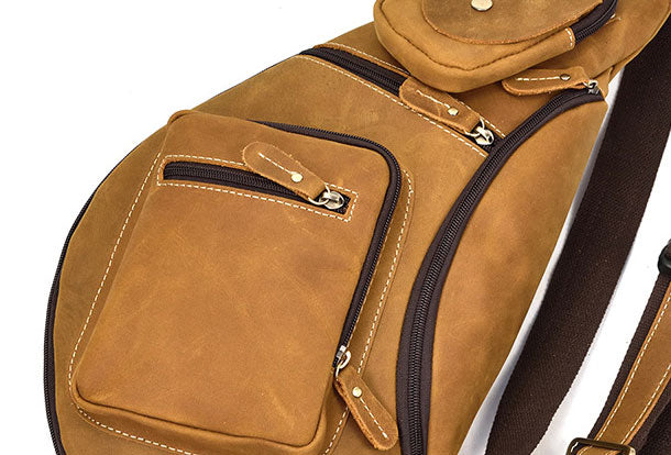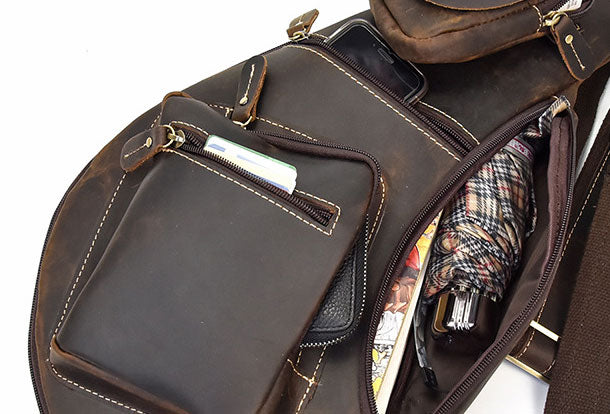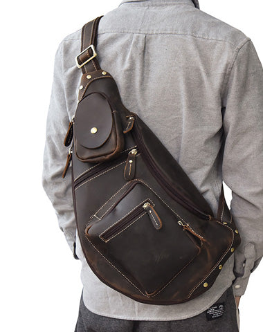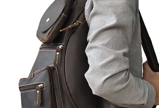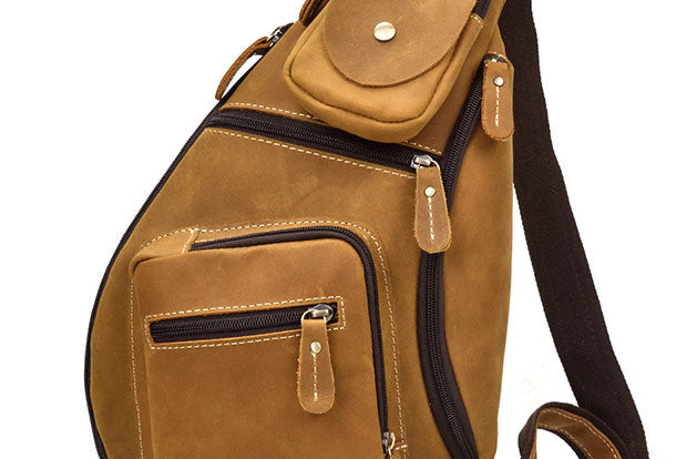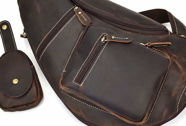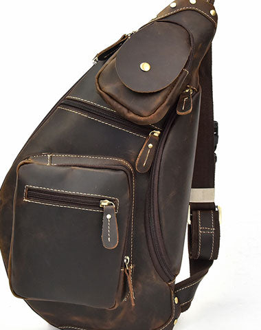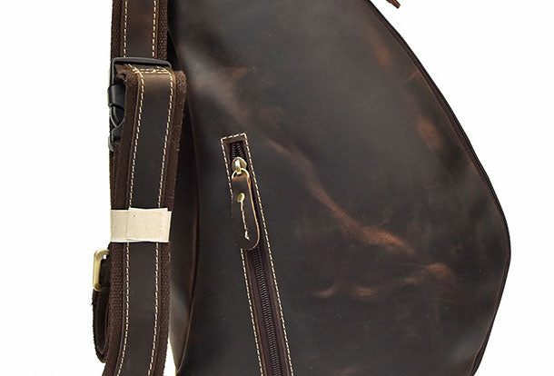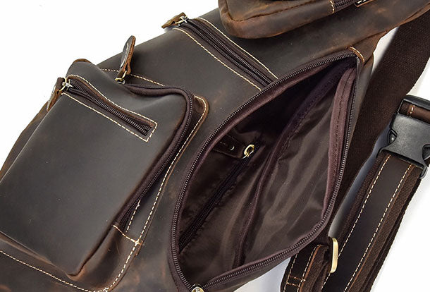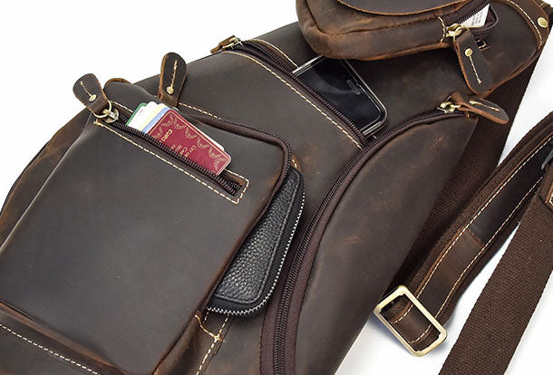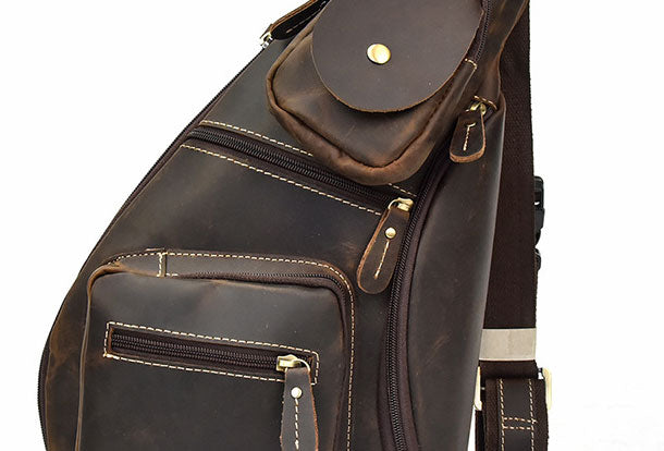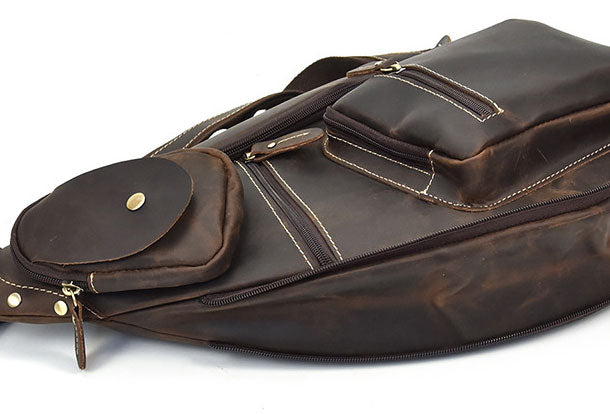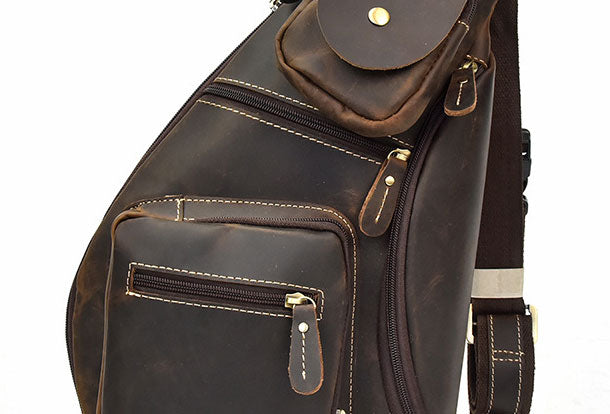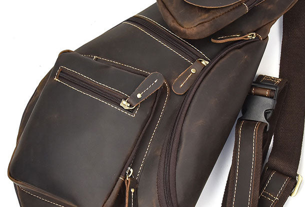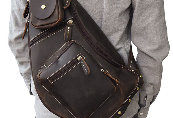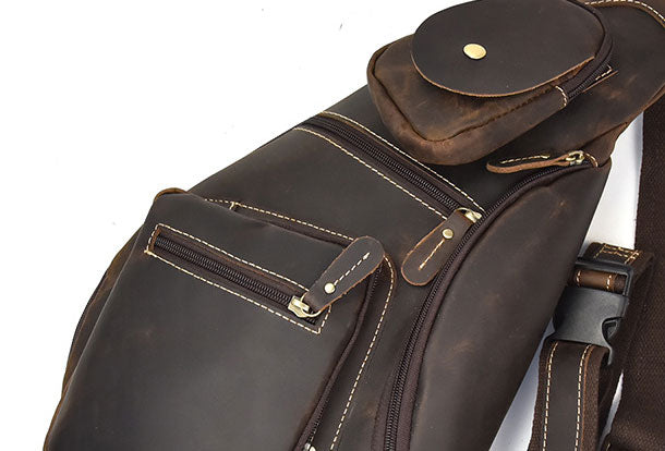 Design: Genuine Leather Cool Chest Bag Backpack Sling Bag Travel Bag Hiking Bag For Men