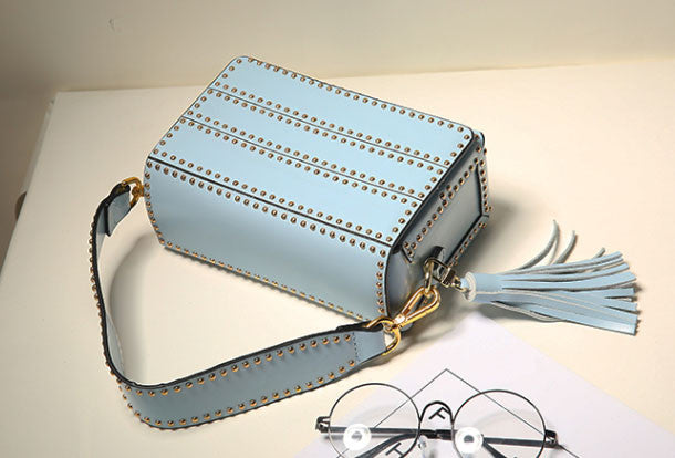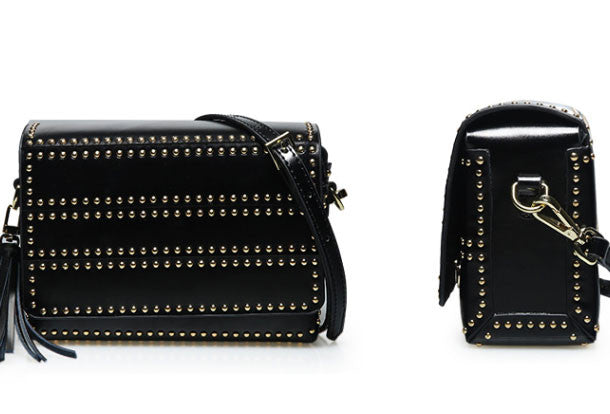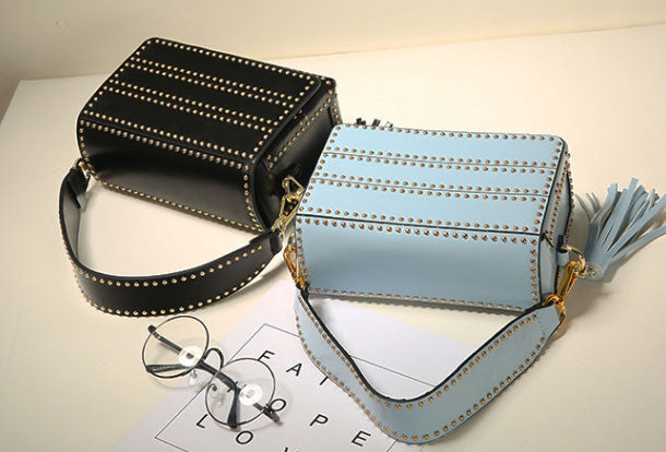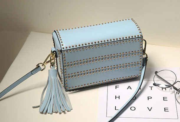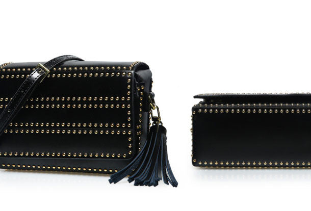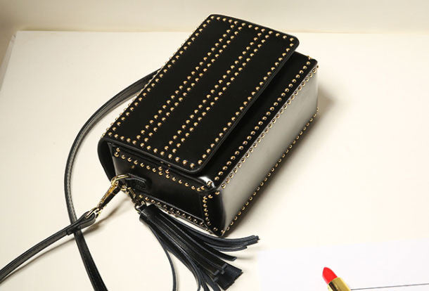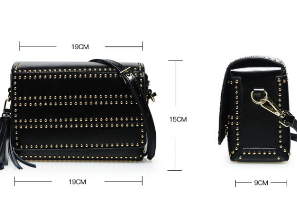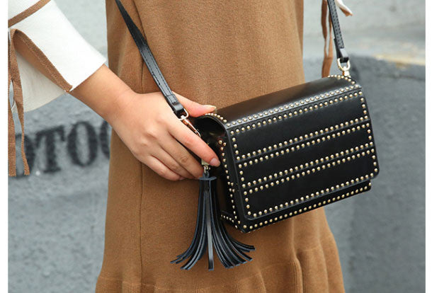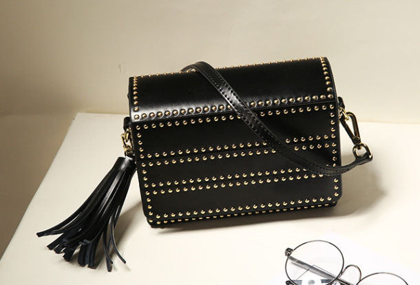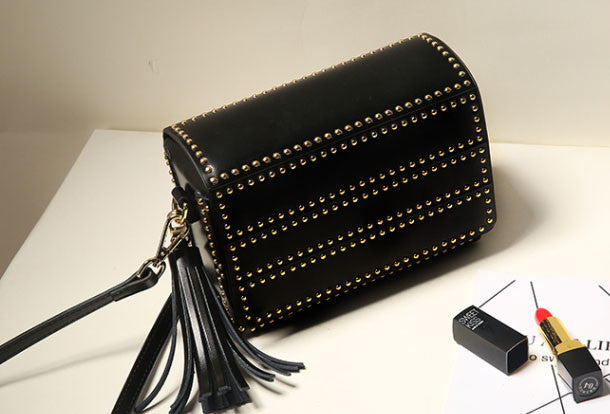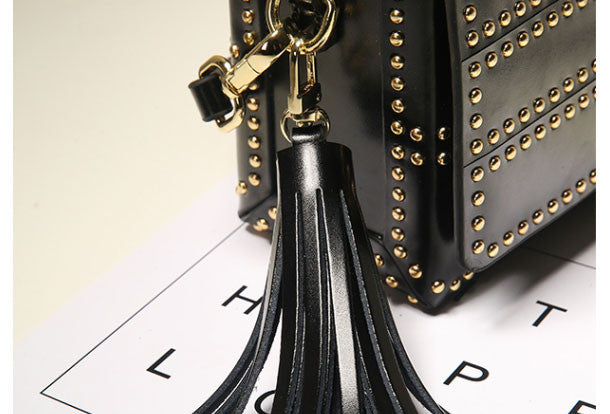 Design: Vintage Leather Women Shoulder Bag rivet Handbag tassels