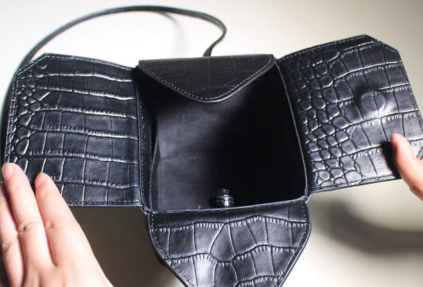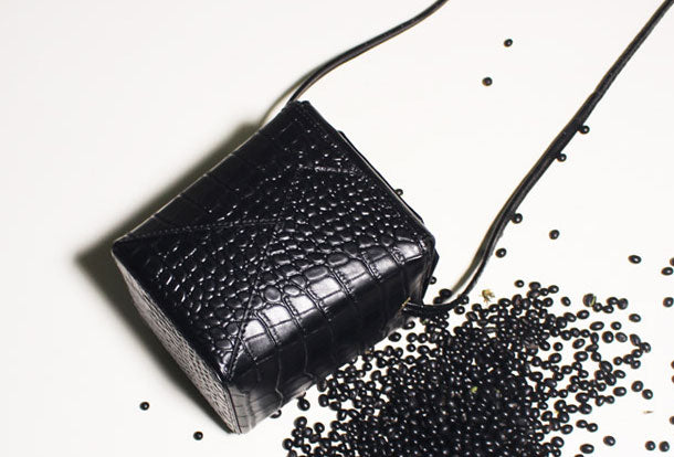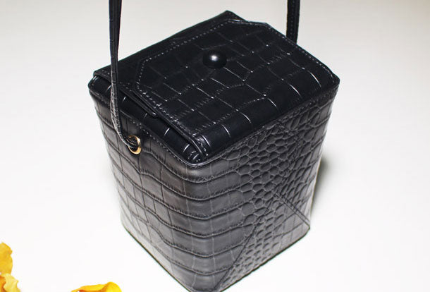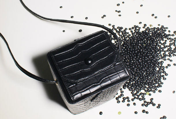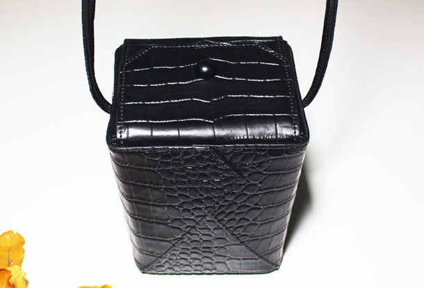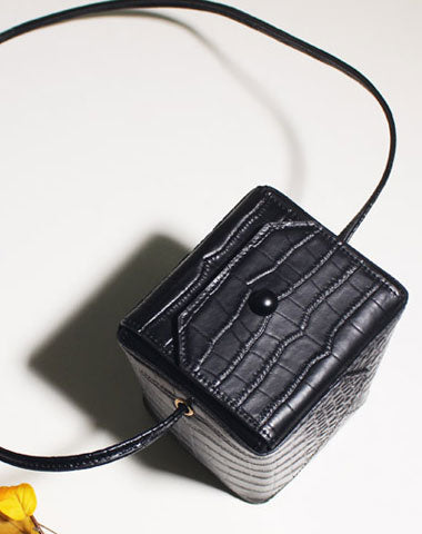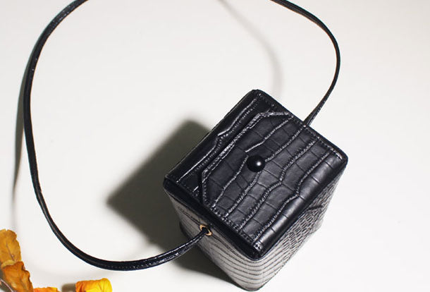 Design: Genuine Leather Cube bag shoulder bag black for women leather crossbody bag