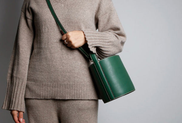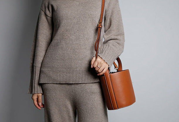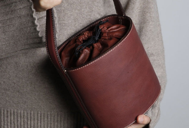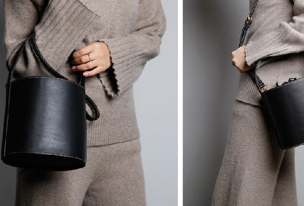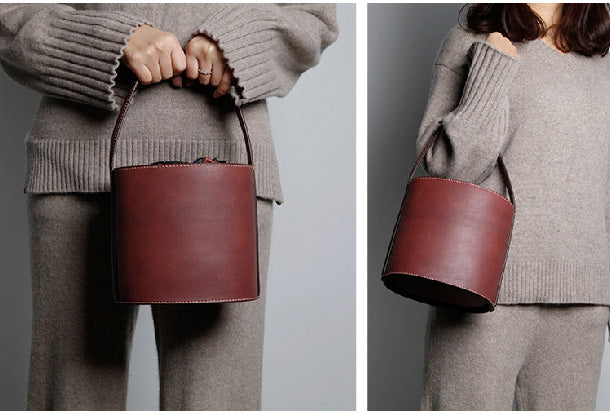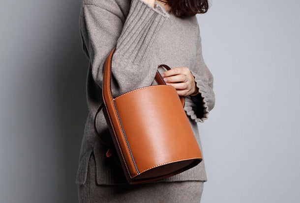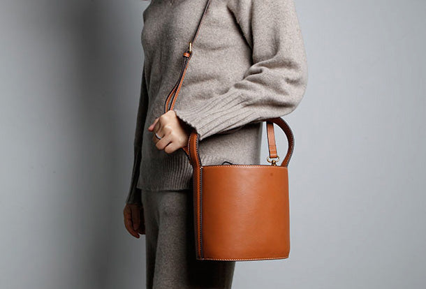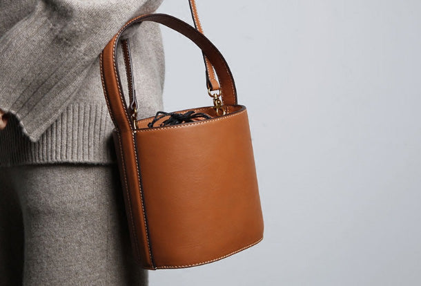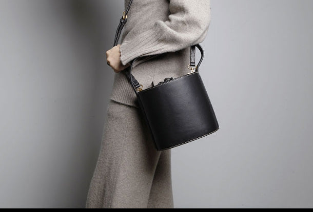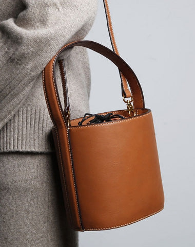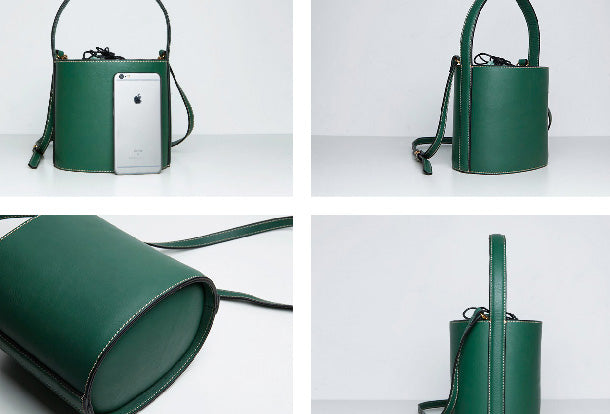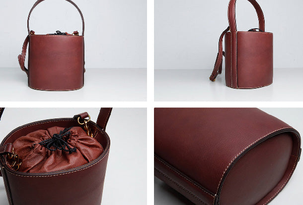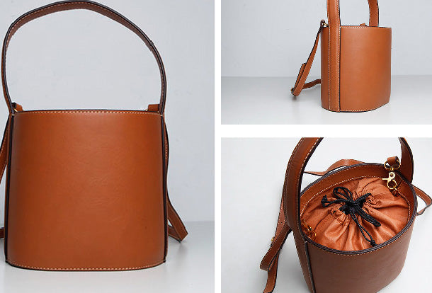Design: Genuine Leather Cute Bucket Bag Handbag Crossbody Bag Shoulder Bag Women Leather Purse