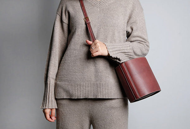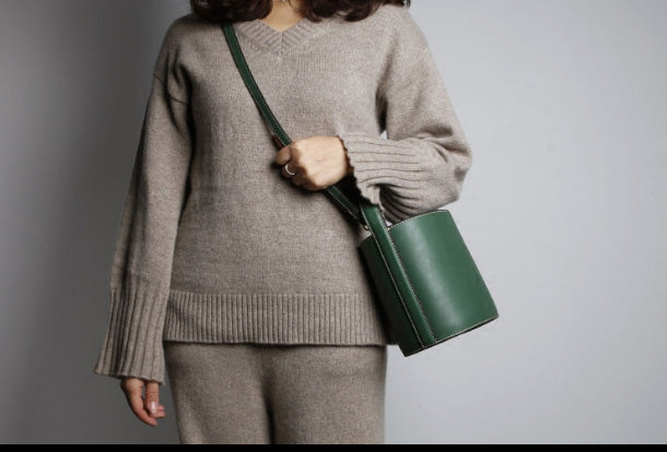 Style: Genuine Leather Cute Bucket Bag Handbag Crossbody Bag Shoulder Bag Women Leather Purse