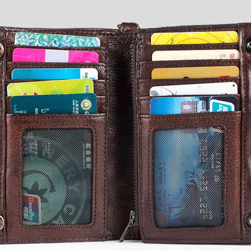 Slots:?1?full size bill slot,?10 card holders, 1 change slot,2 license slot